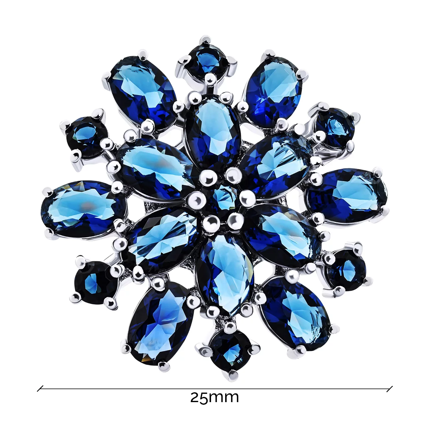 Срібна брошка з родіюванням "Квітка" з сапфірами - 1525183