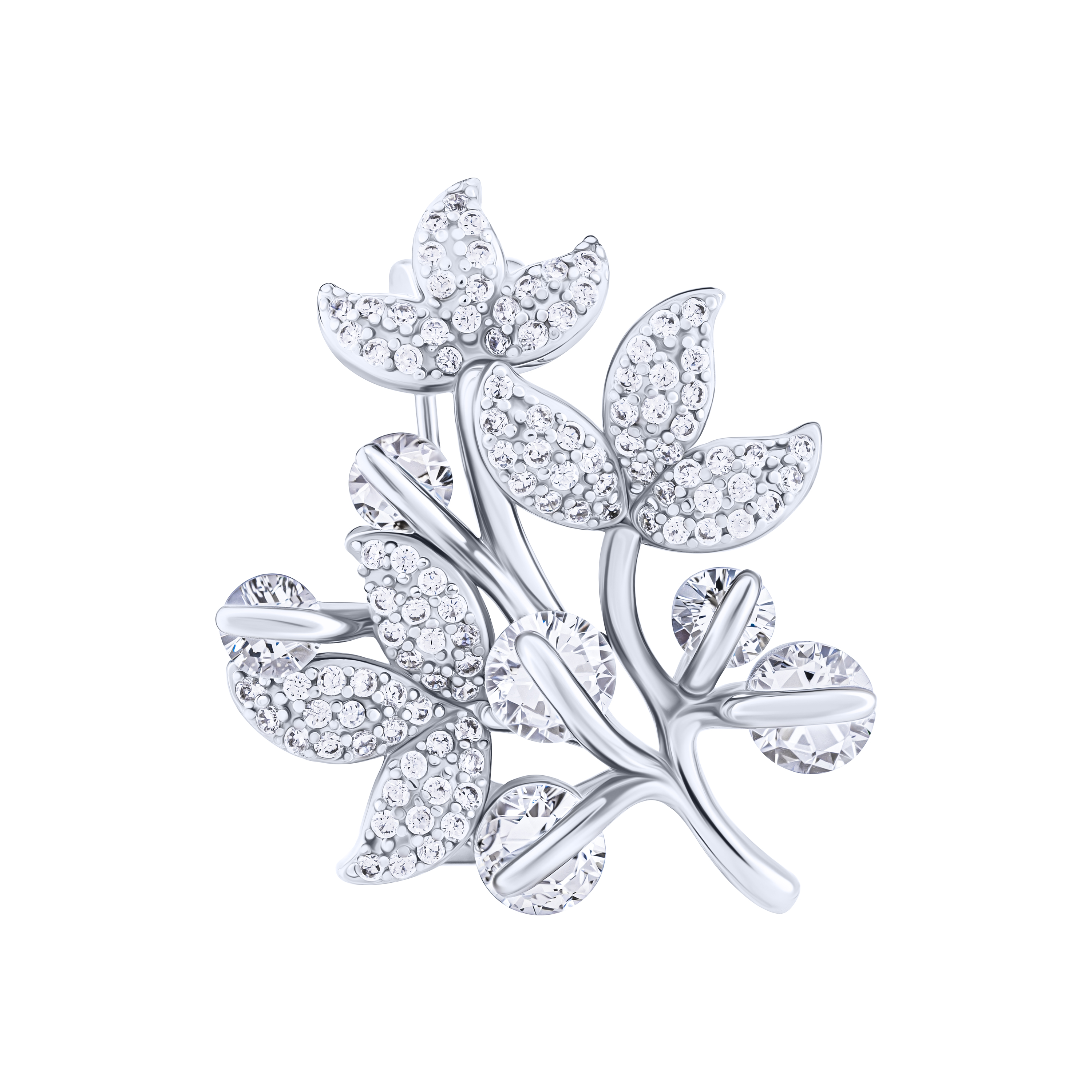 Срібна брошка "Гілочка з листям" з фіанітами - 2132245