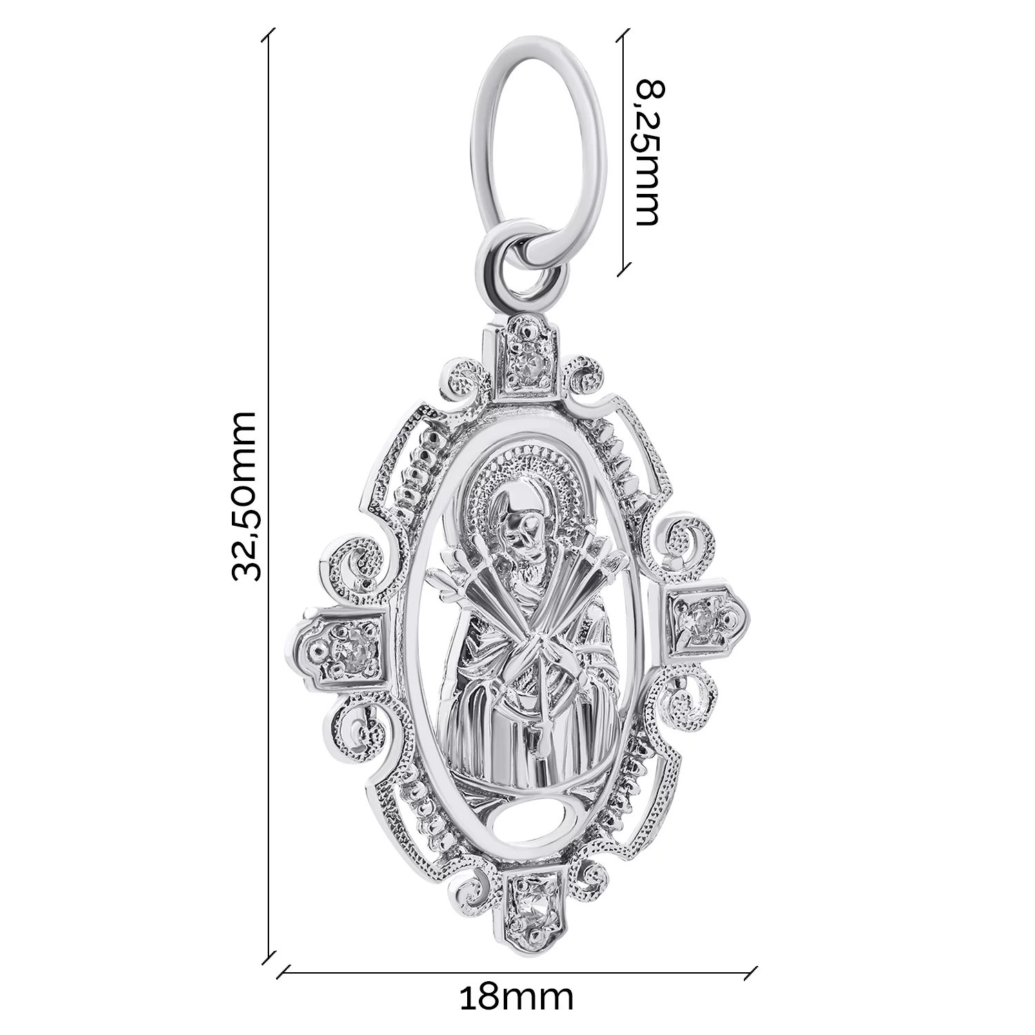 Срібна ладанка Богородиця "Семистрільна" з фіанітами - 1521403