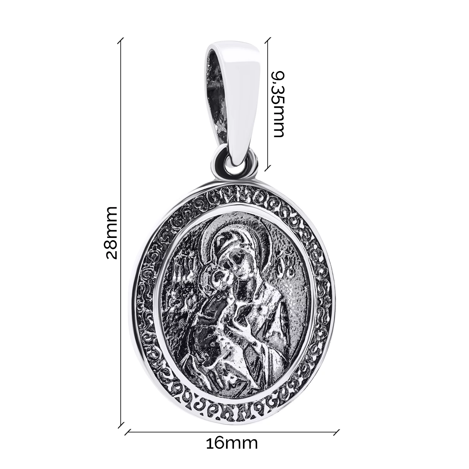 Срібна ладанка Богородиця "Володимирська" з чорнінням - 1521545