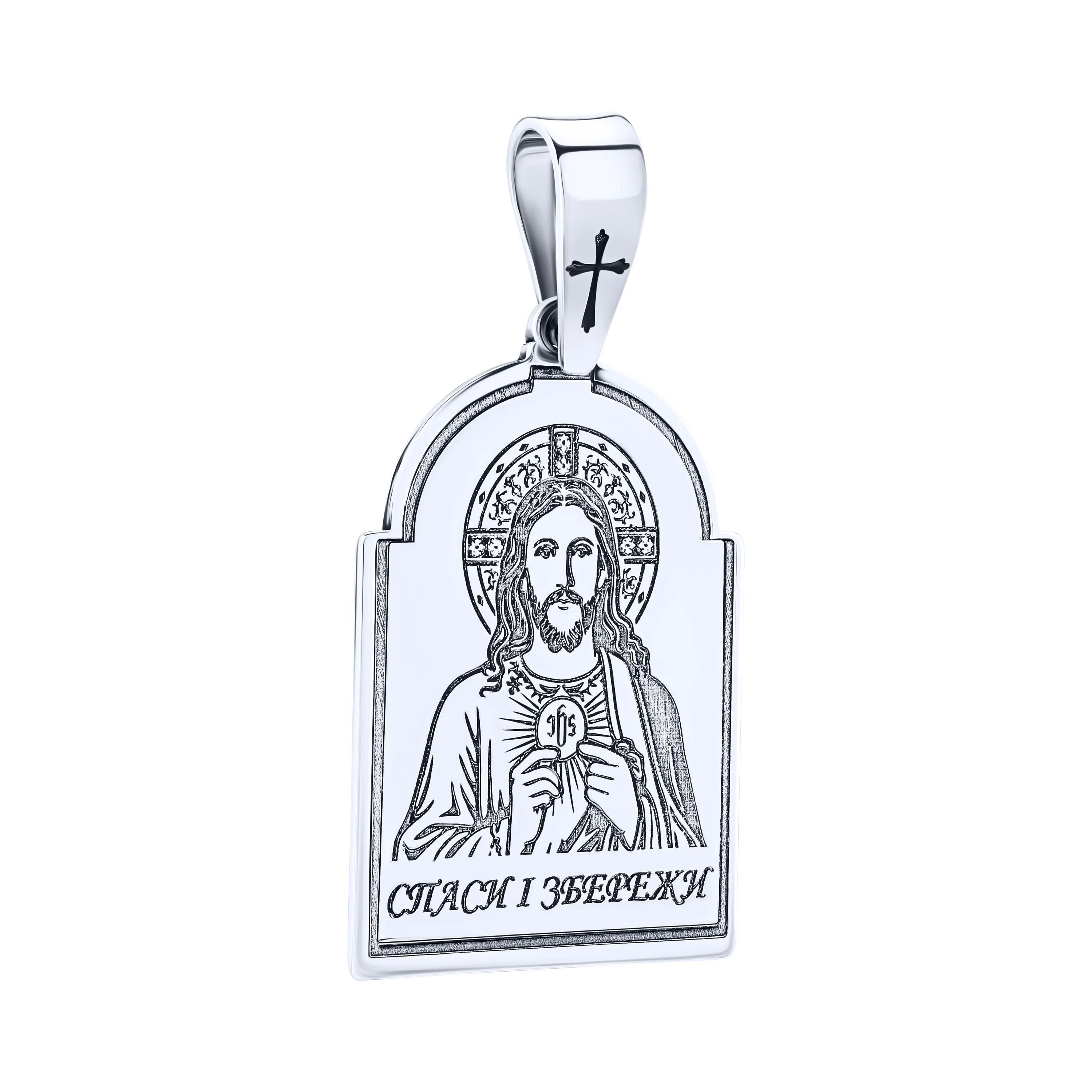 Срібна ладанка "Ісус Христос" з молитвою та чорнінням - 2078765