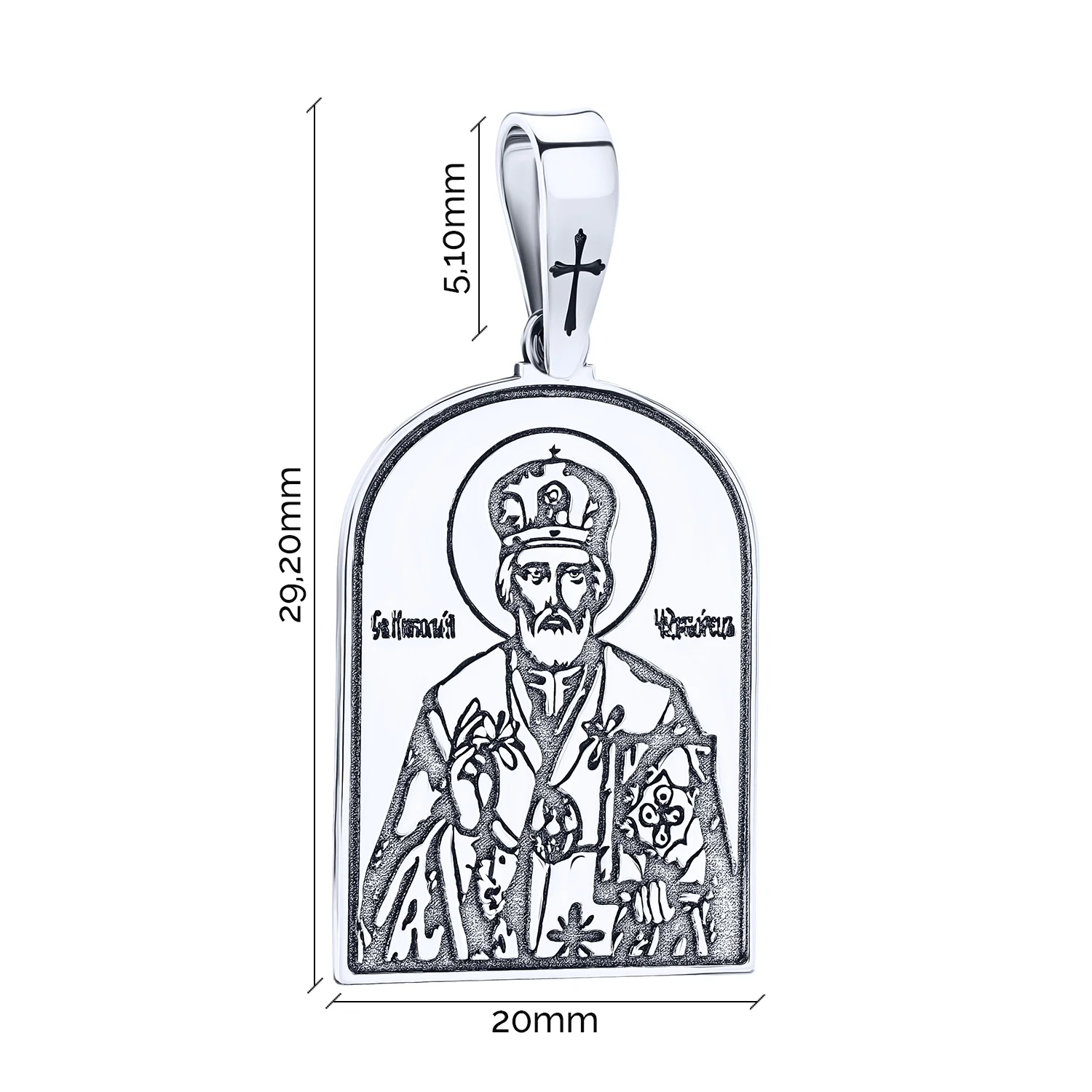 Срібна ладанка "Микола Чудотворець" з молитвою та чорнінням - 2078763