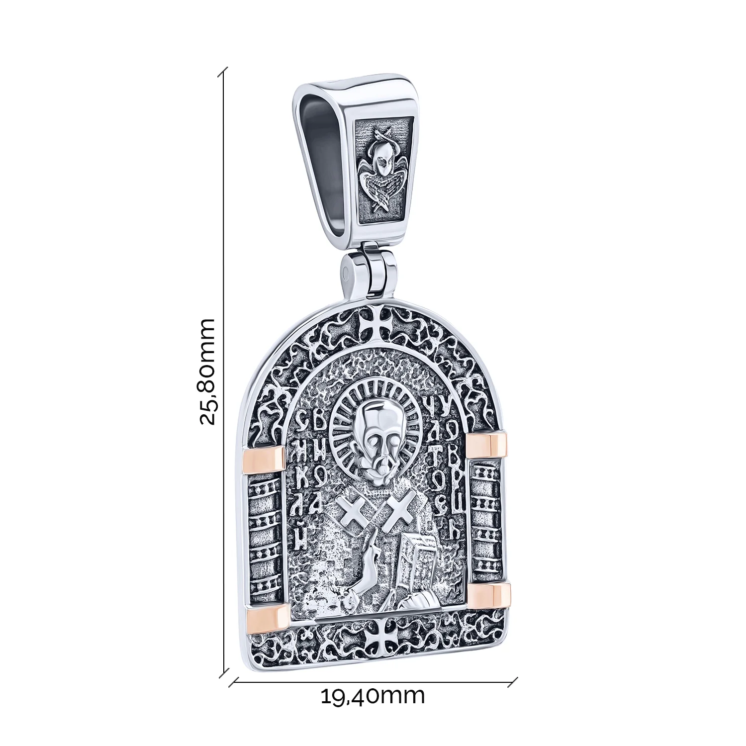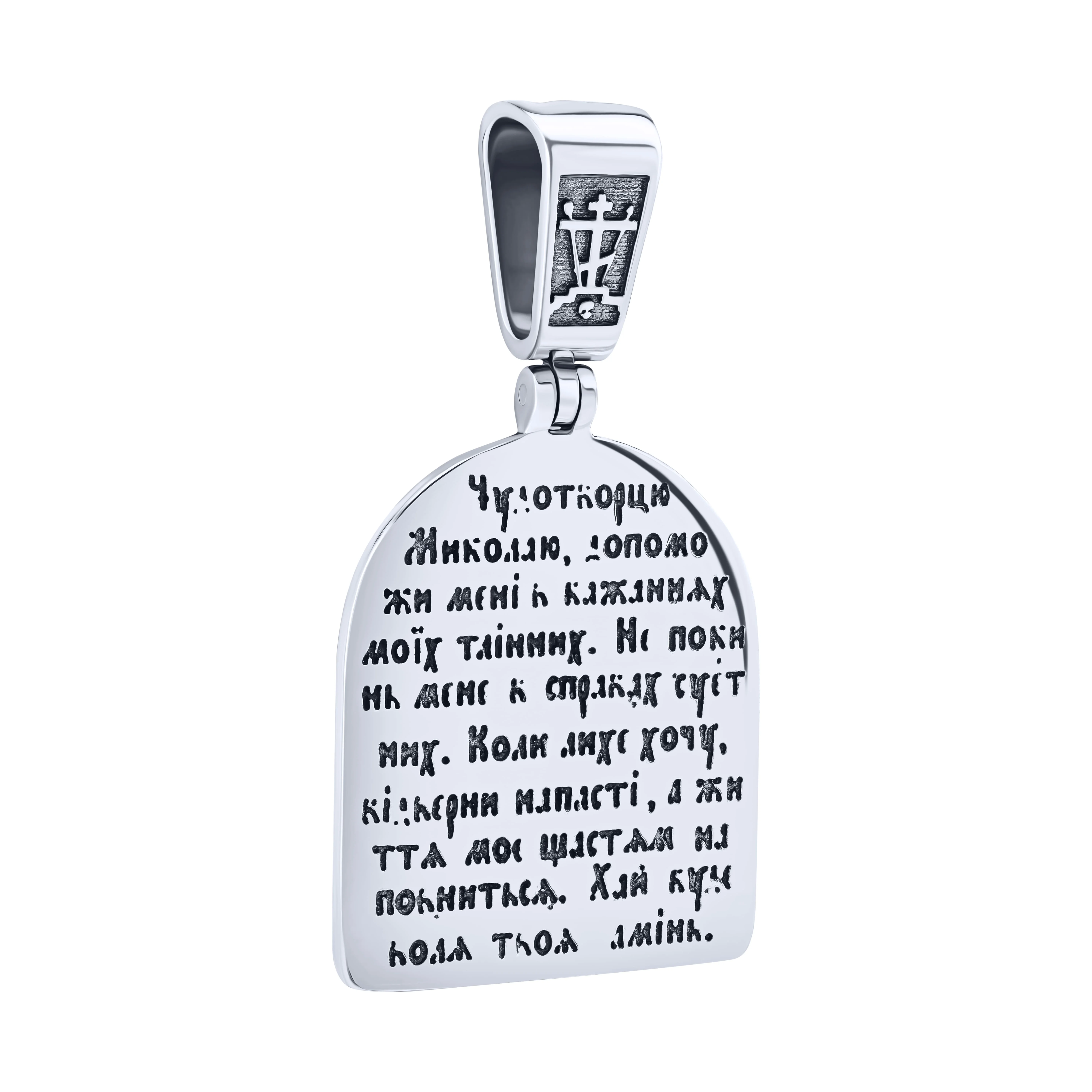 Срібна ладанка "Микола Чудотворець" з молитвою у позолоті та з чорнінням - 2081957