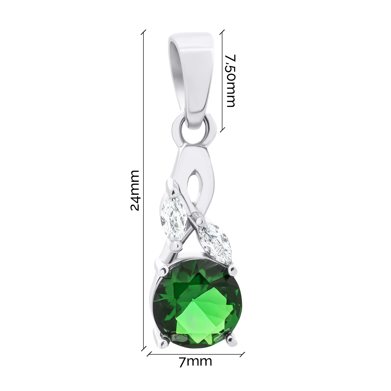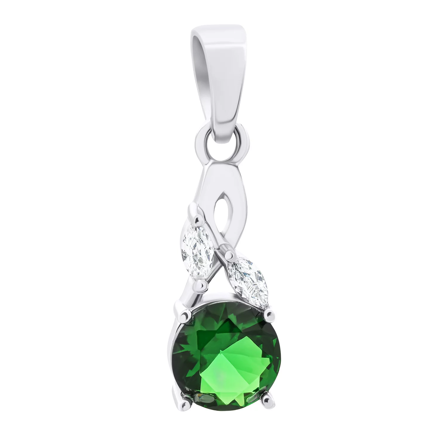 Срібний підвіс зі смарагдом та фіанітами "Переплетення" - 1525108