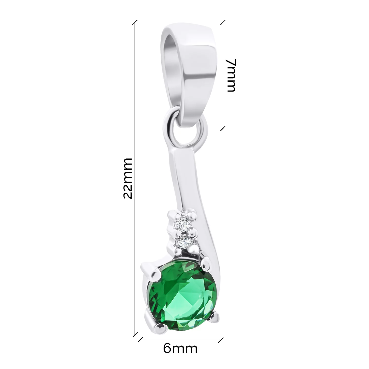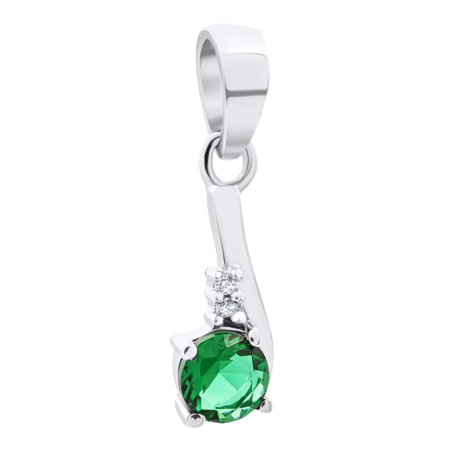 Срібна підвіска зі смарагдом і фіанітами з родіюванням - 1525107