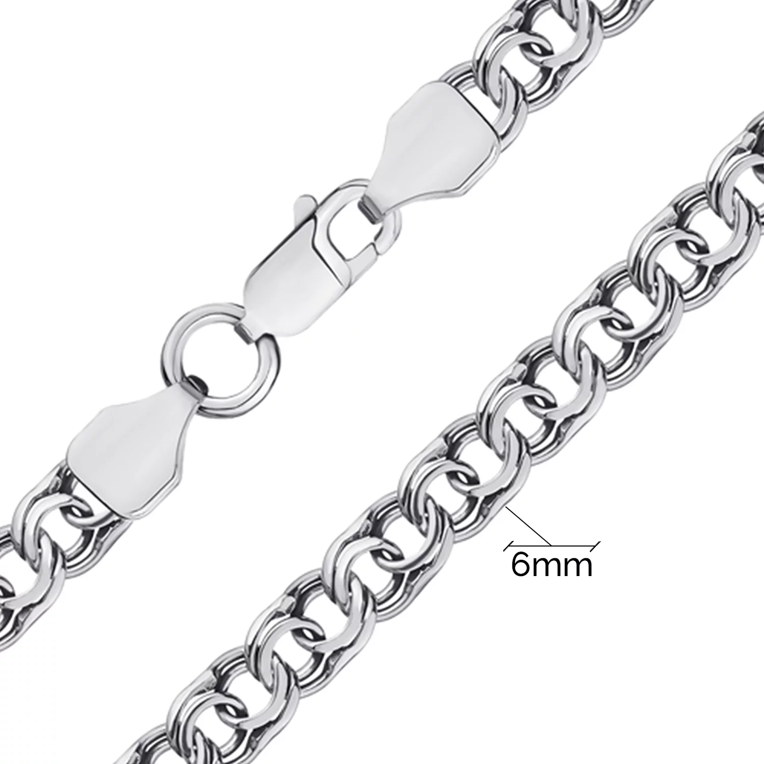 Срібний ланцюжок у плетінні бісмарк — один із видів ювелірних прикрас, що підходить жінкам і чоловікам одночасно. Елегантність та мінімалізм у дизайні роблять виріб універсальним, тому ним можна доповнювати як повсякденні образи, так і офісні чи урочисті. Завдяки білому кольору срібла 925 проби, з якого ланцюжок виготовлено, він привертає увагу приємним та м'яким блиском. Плетіння бісмарк, що передбачає з'єднання ланок округлої форми, забезпечує прикрасі об'єм та елегантний вигляд. Скріплює частини ланцюжка прямокутна застібка-карабін.