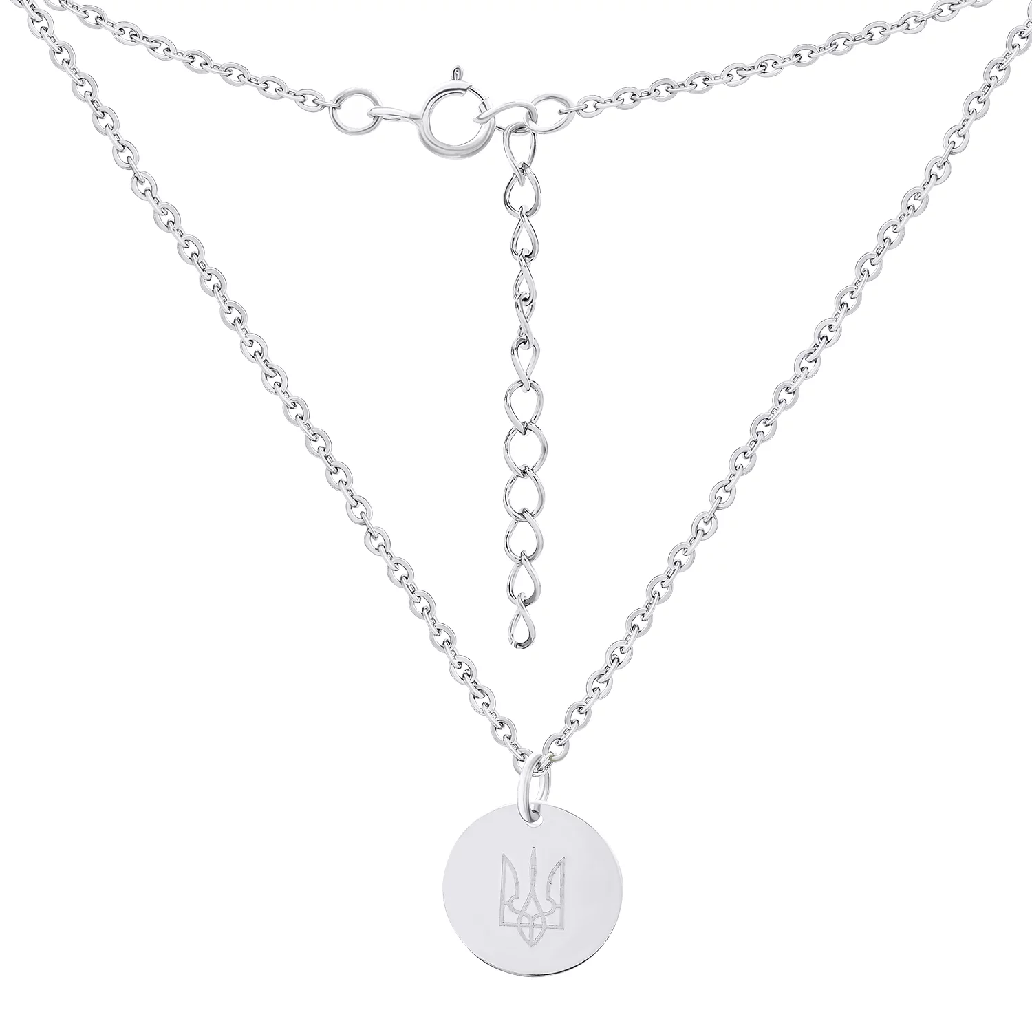 Ланцюжок зі срібла з підвіскою "Тризуб - Герб України" якірне плетіння - 1680237