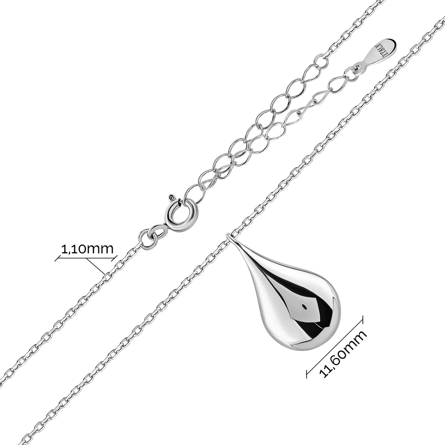 Елегантний срібний ланцюжок з підвісом "Крапля" з плетінням якір - 1963711