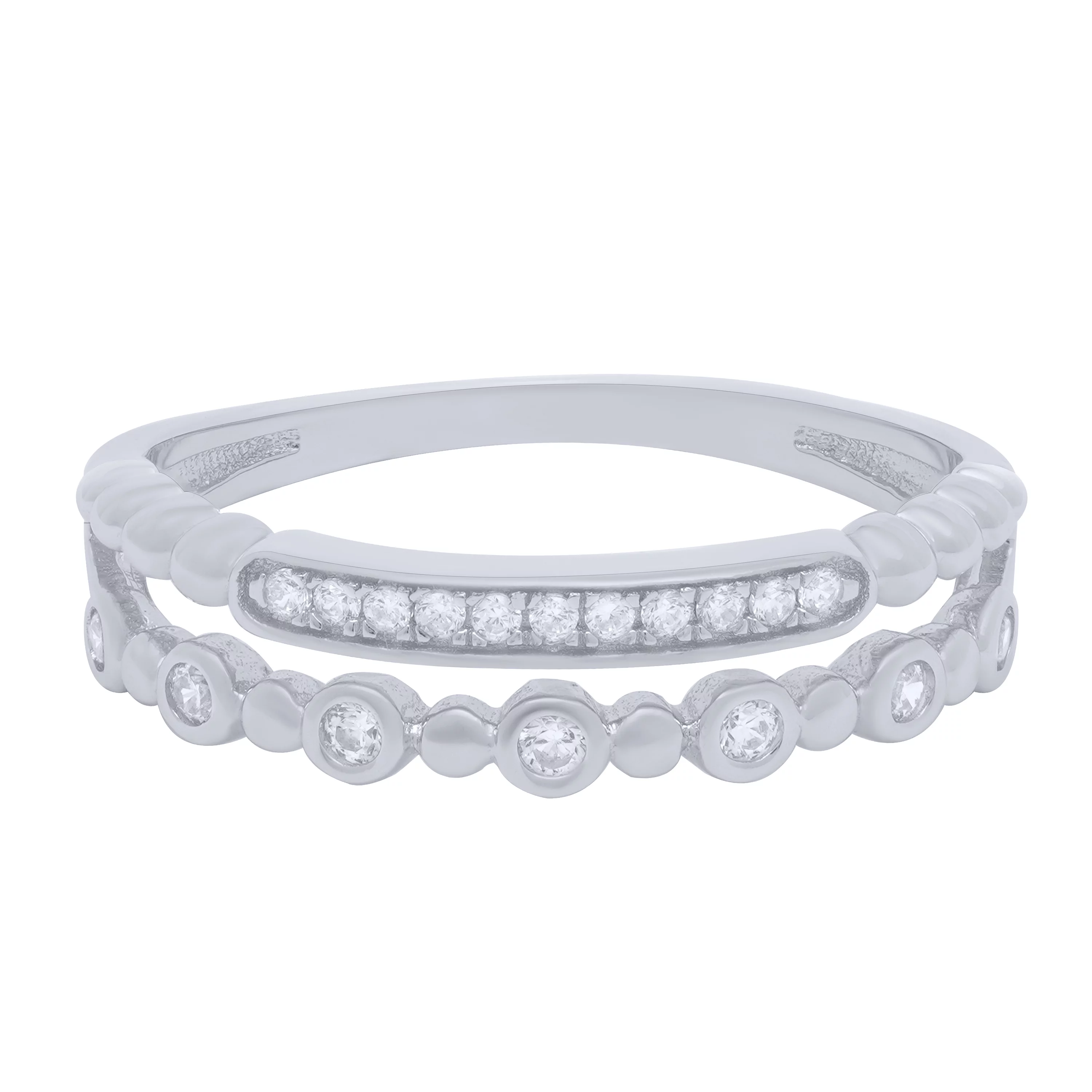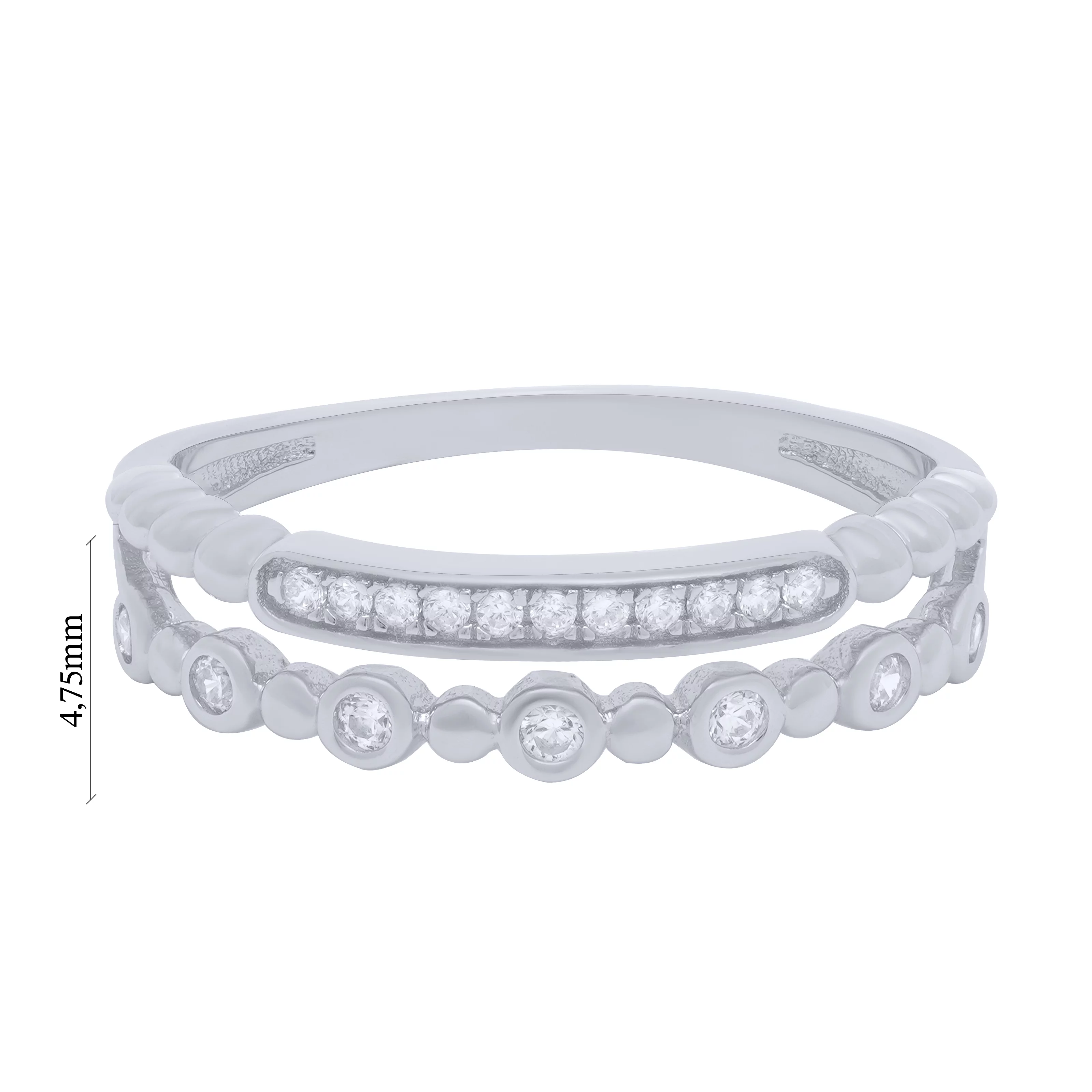 Срібна подвійна каблучка з доріжкою фіанітів - 1639757