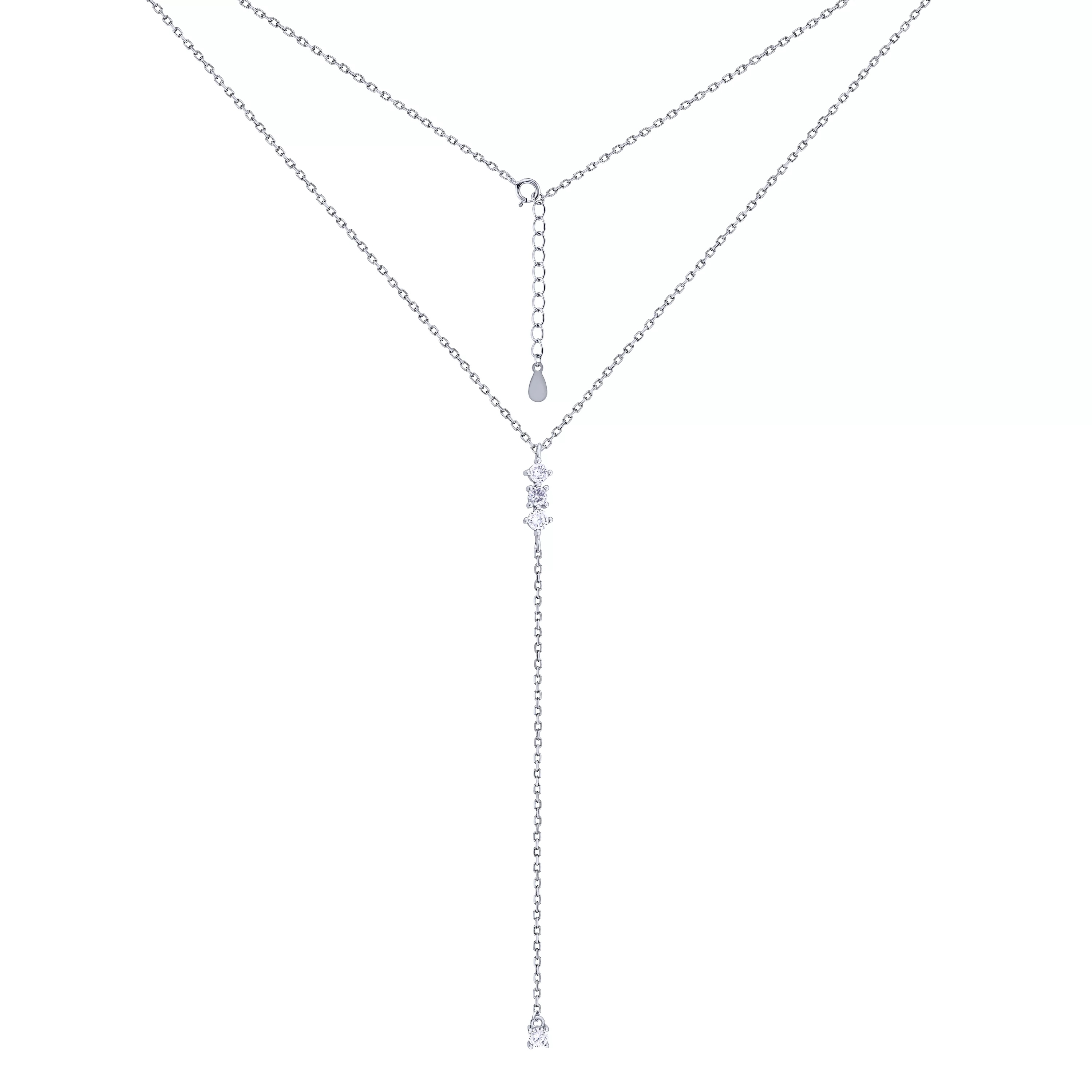 Елегантне кольє зі срібла з підвісом "Конюшина" з фіанітами та якірним плетінням - 1962877