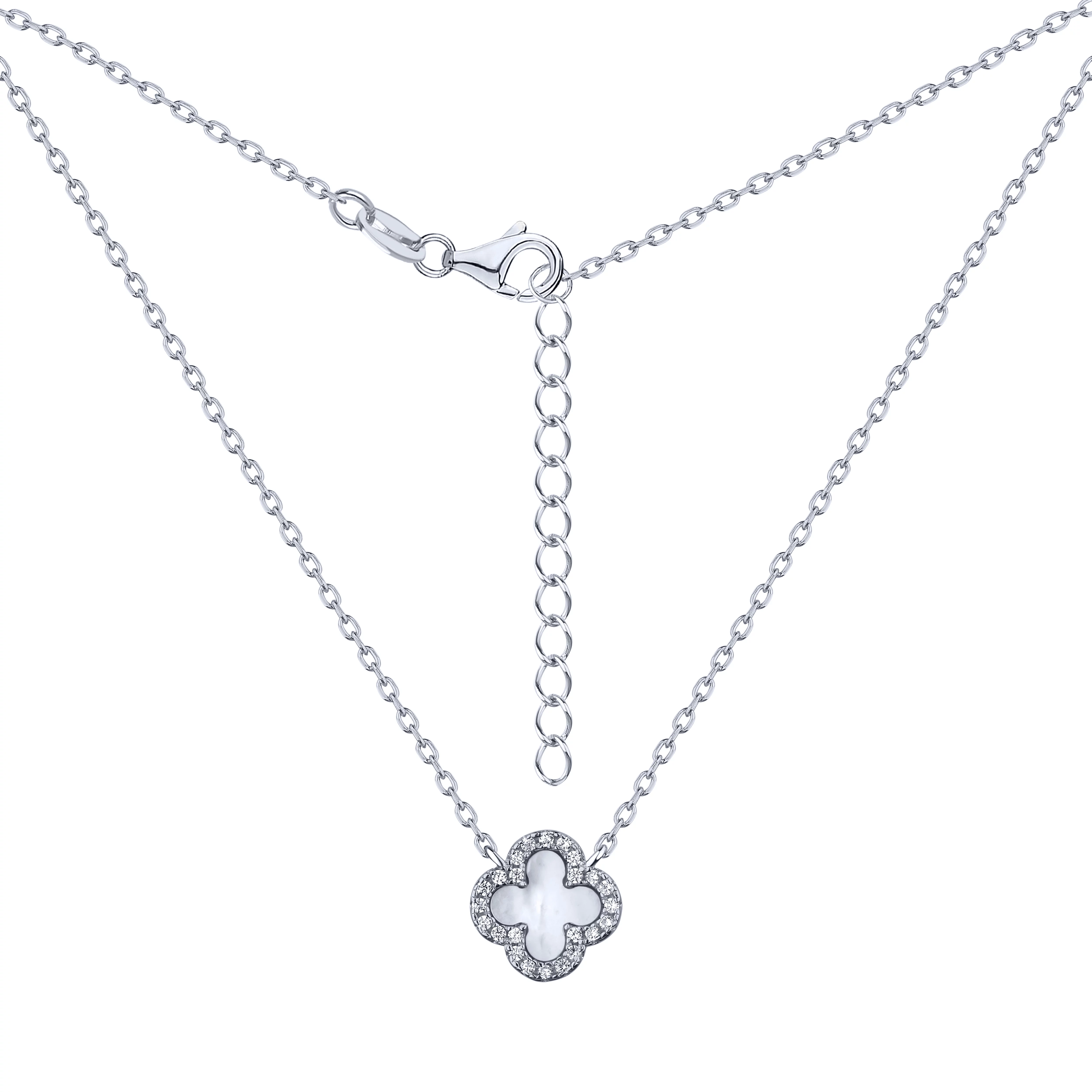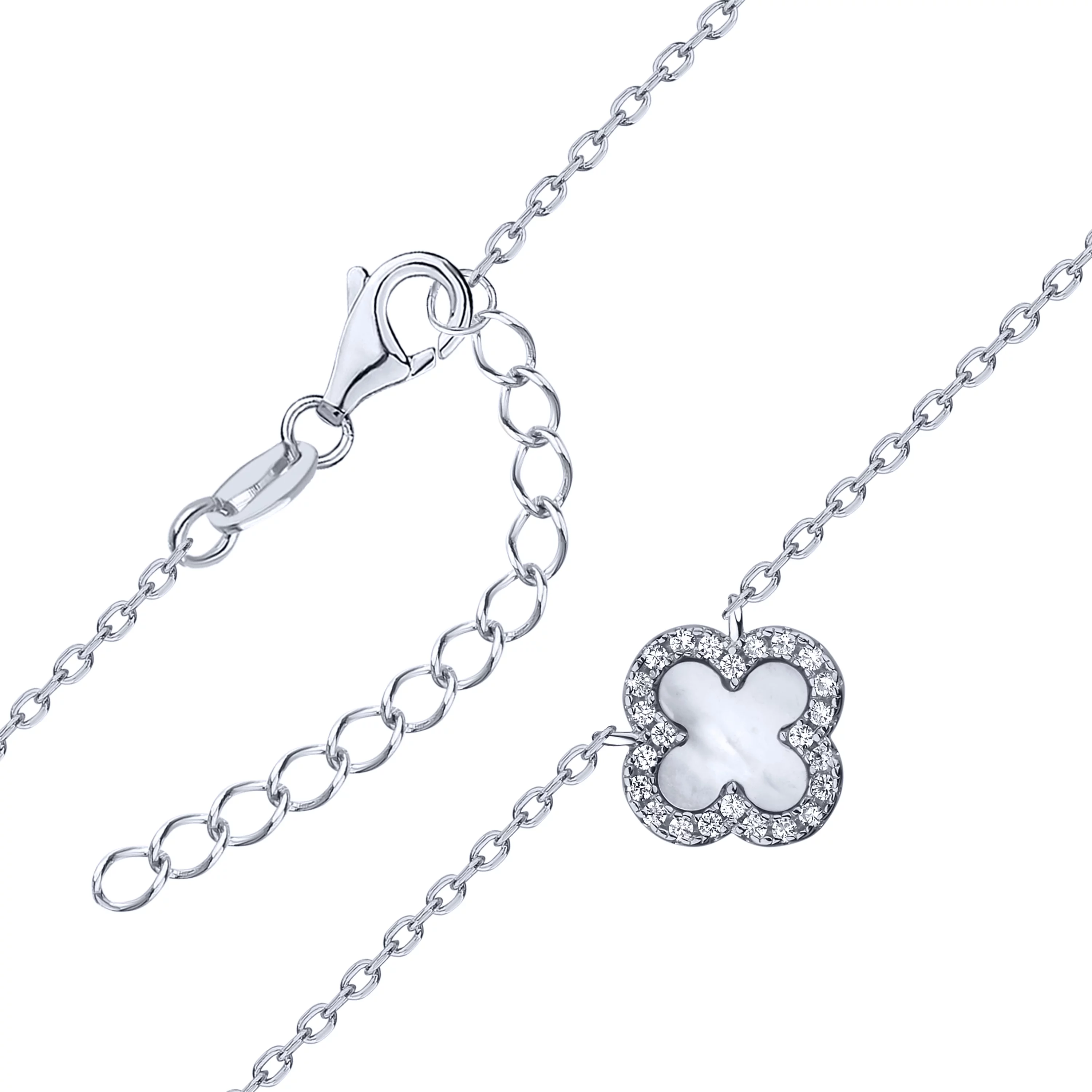 Елегантне кольє зі срібла з підвісом "Конюшина" з фіанітами та якірним плетінням - 1962877
