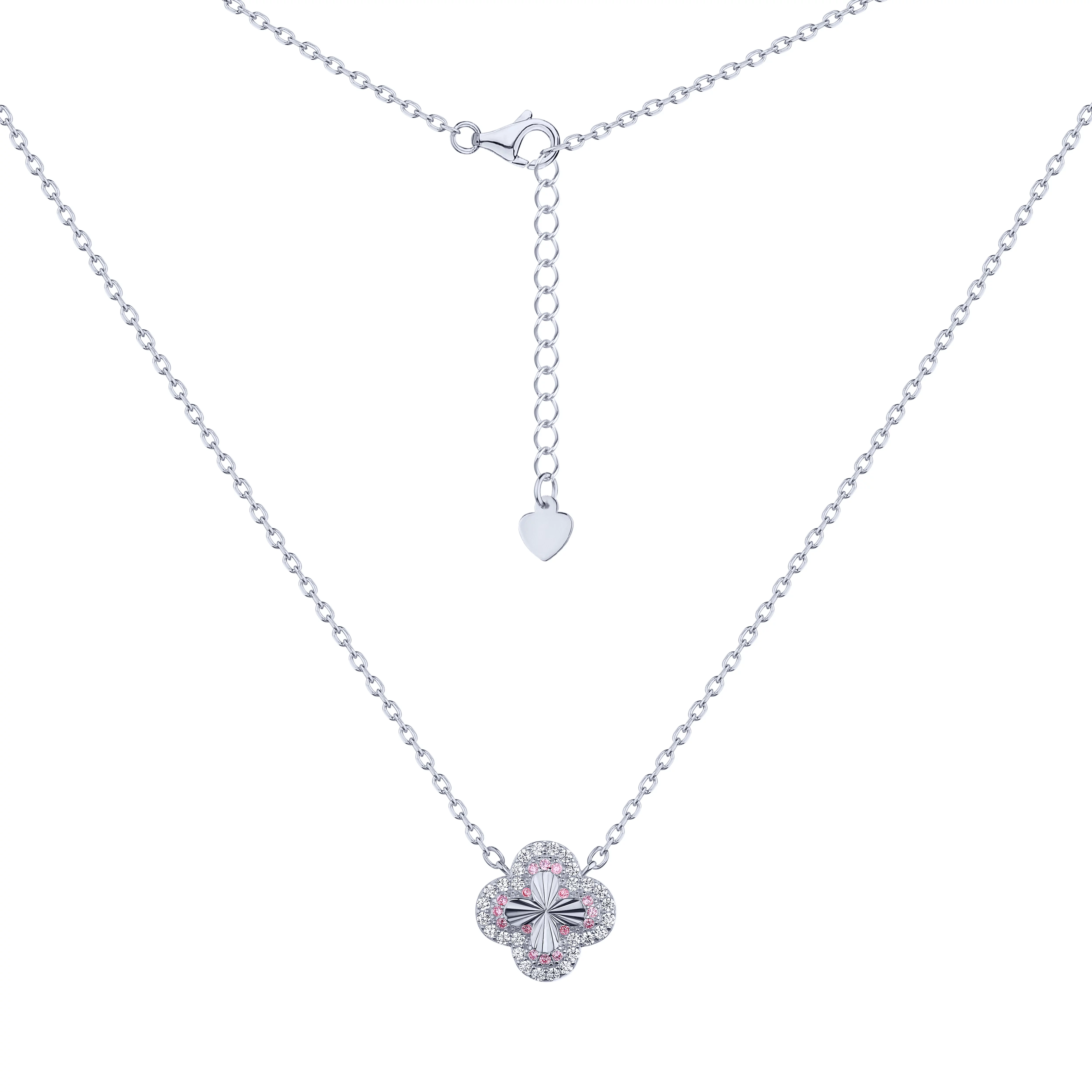 Срібне кольє з підвісом "Конюшина" з перламутром з фіанітами та якірним плетінням - 1935221