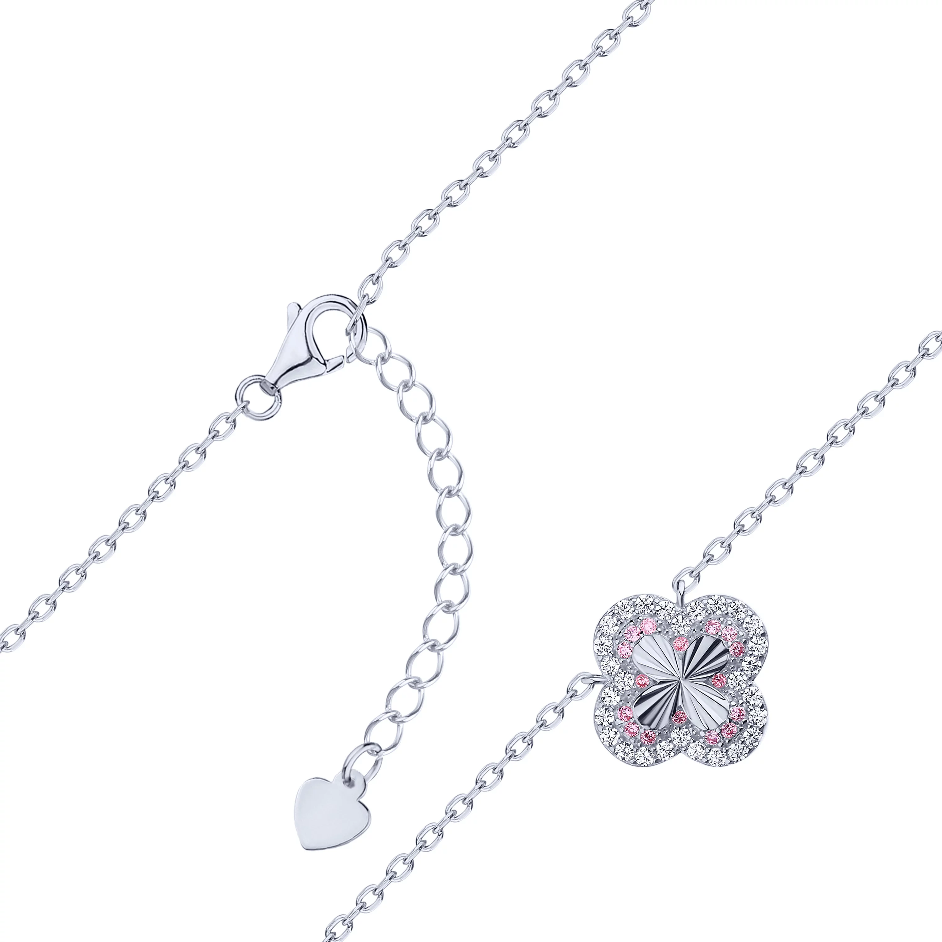 Елегантне кольє зі срібла з підвісом "Конюшина" з фіанітами та якірним плетінням - 1962877