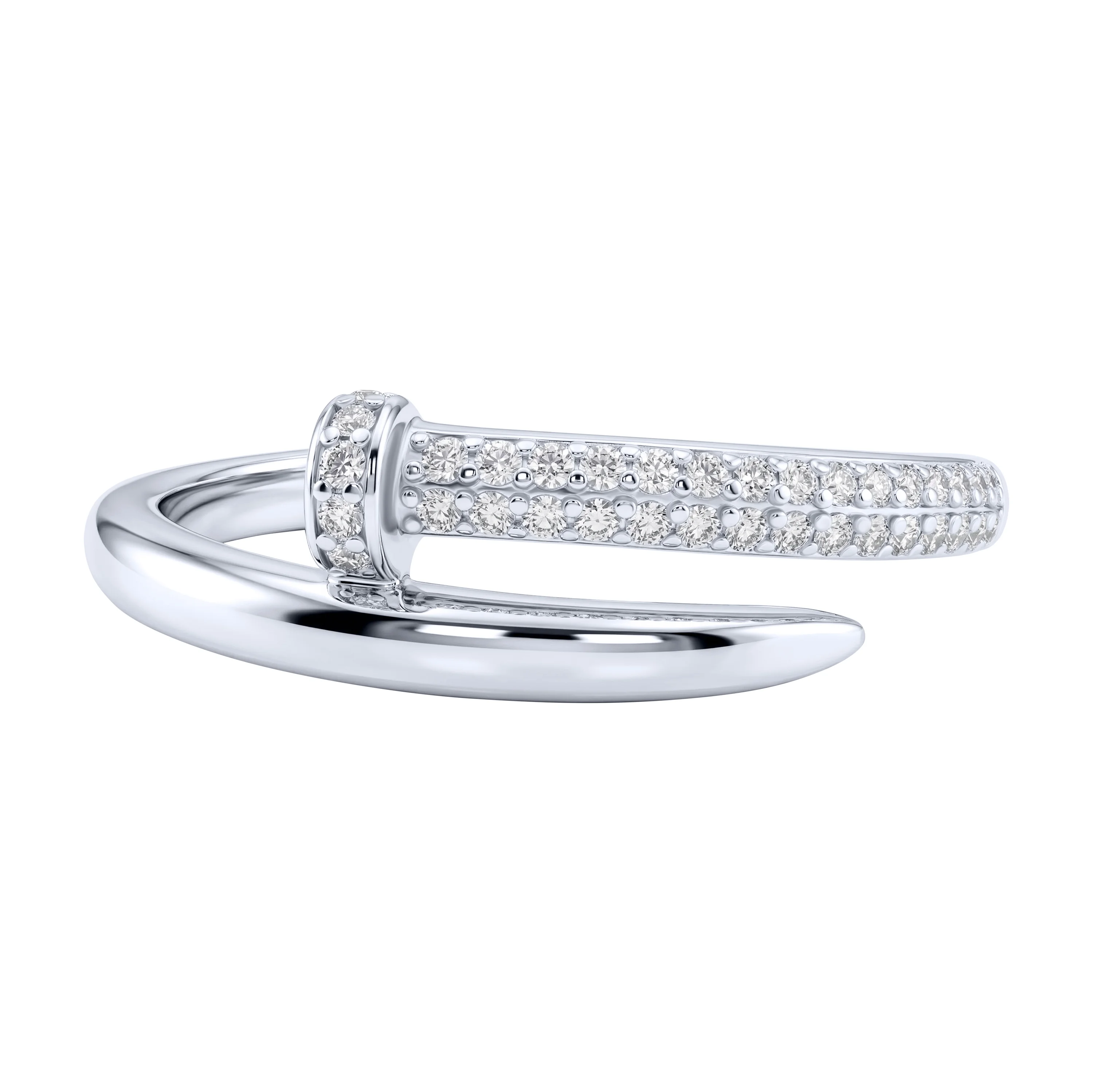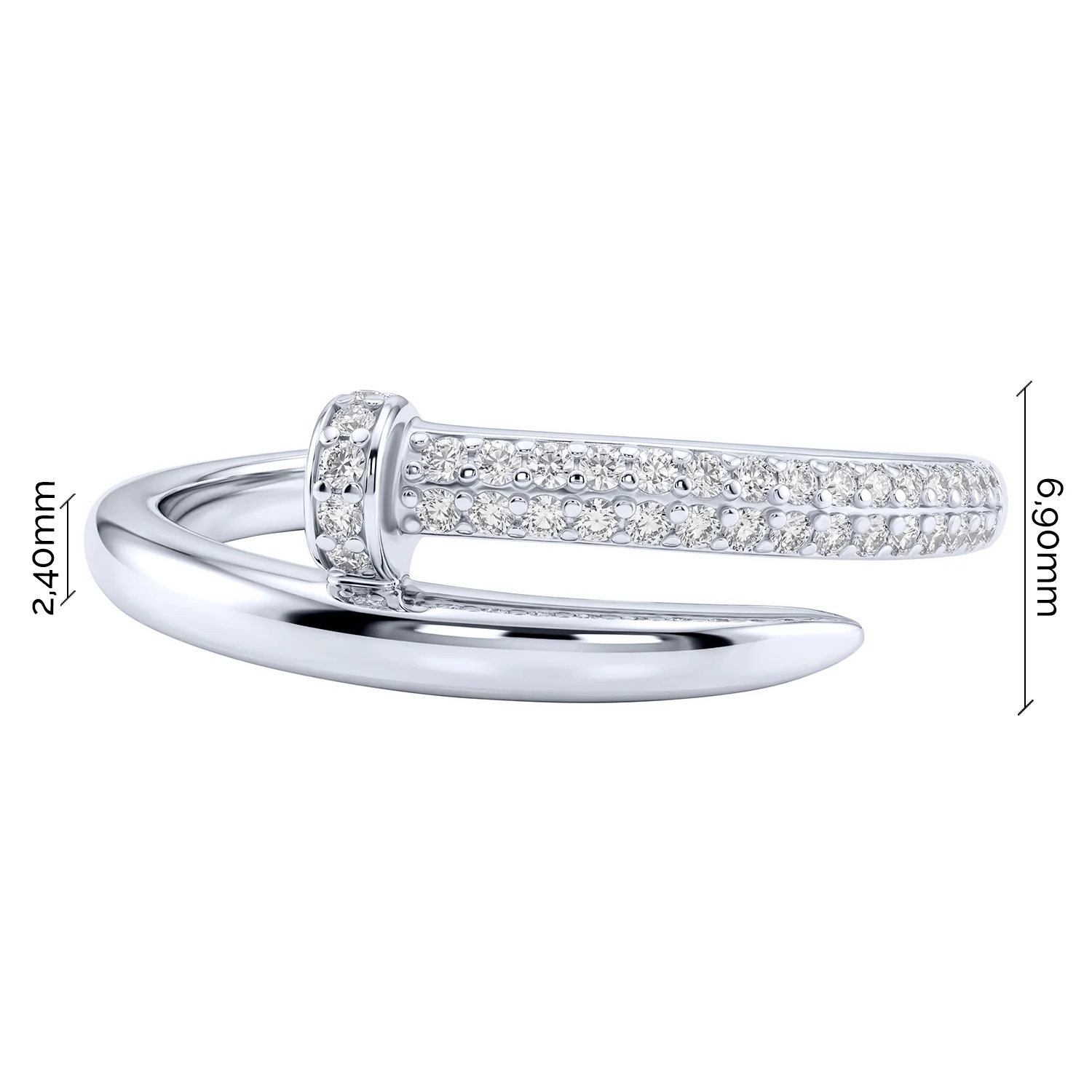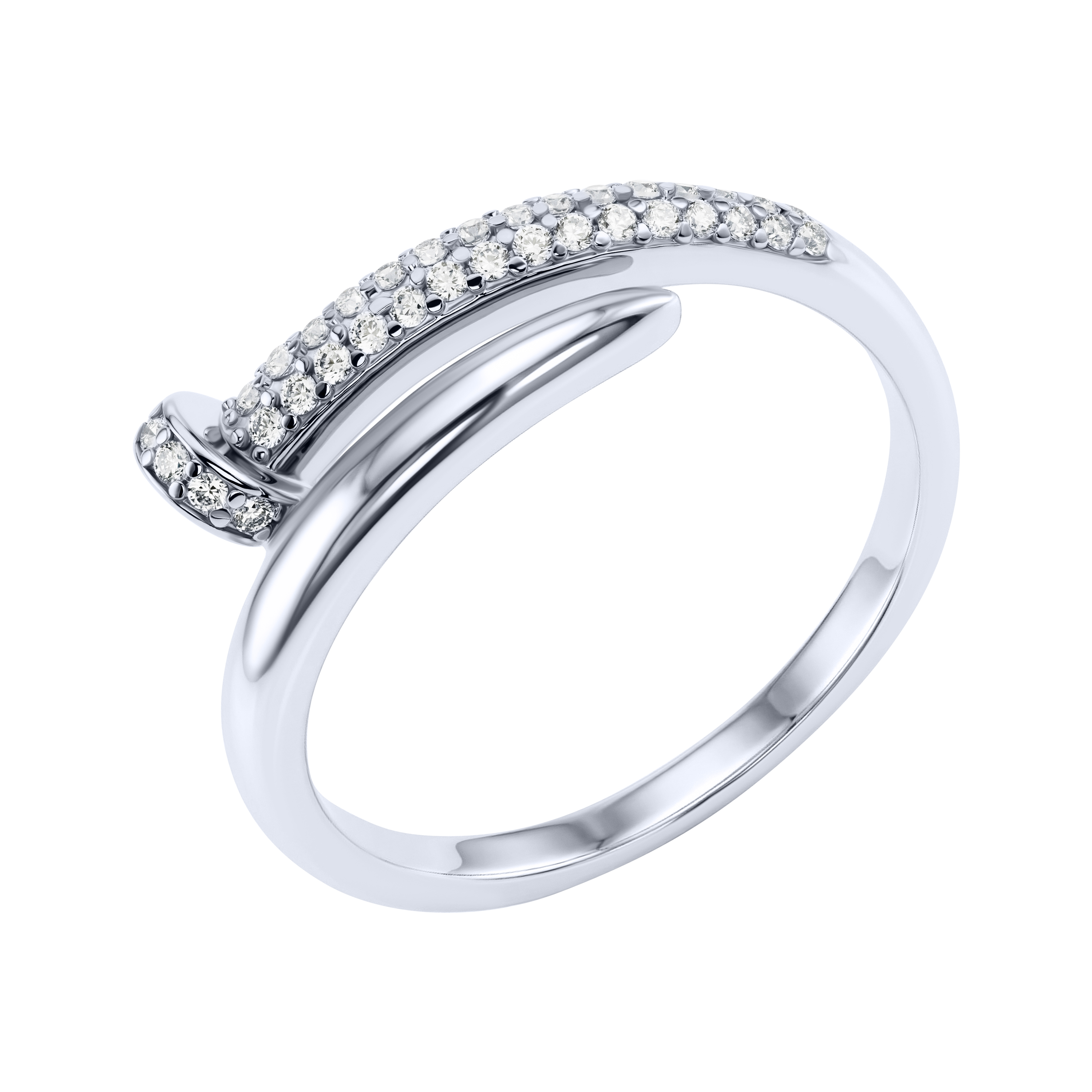 Срібна каблучка незамкнута "Цвях" з фіанітами - 2159474