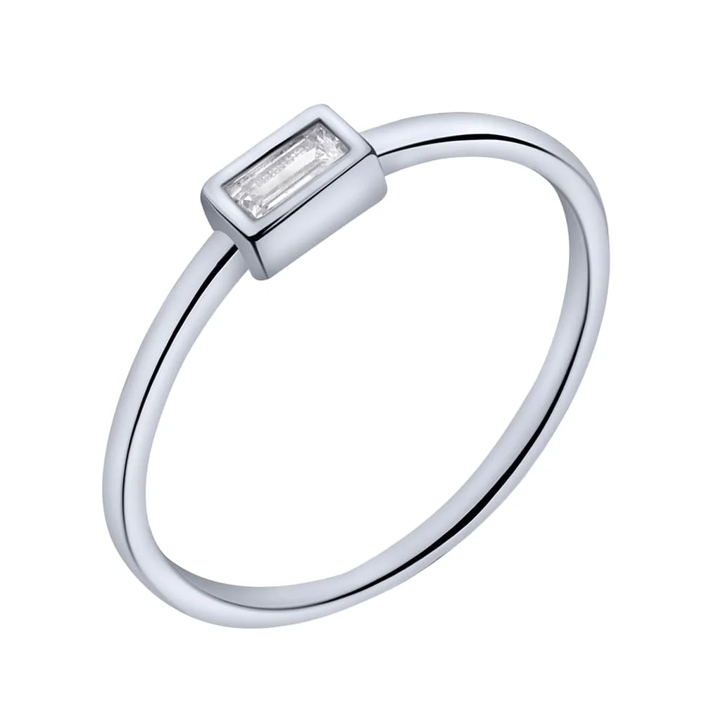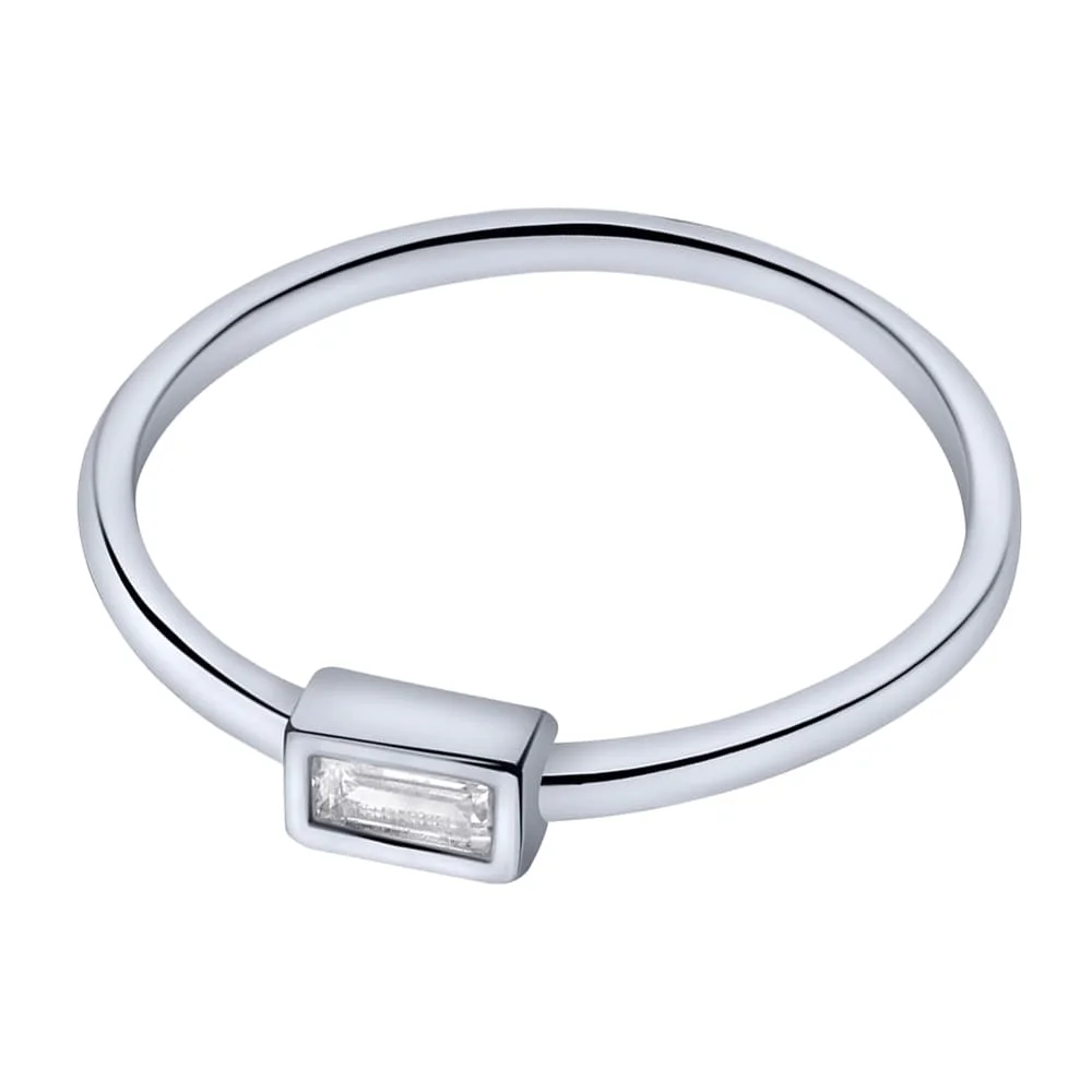 Срібна каблучка "Прямокутник" з фіанітом - 1978415