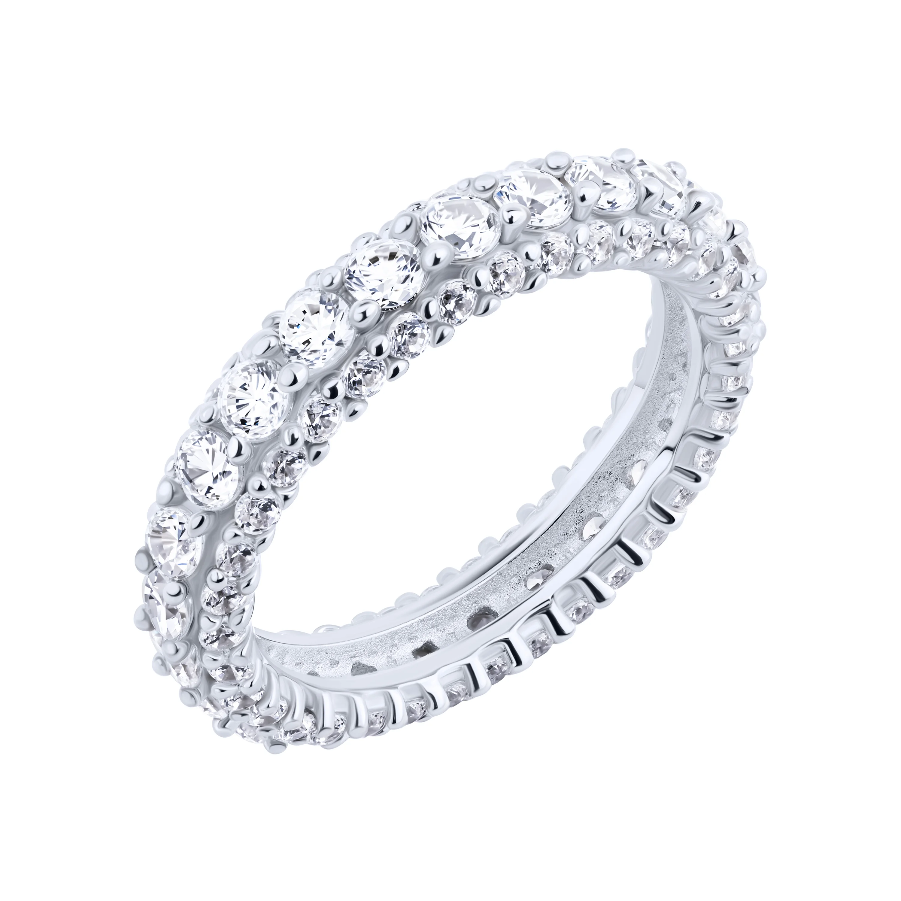 Срібна каблучка з доріжками фіанітів - 2098611