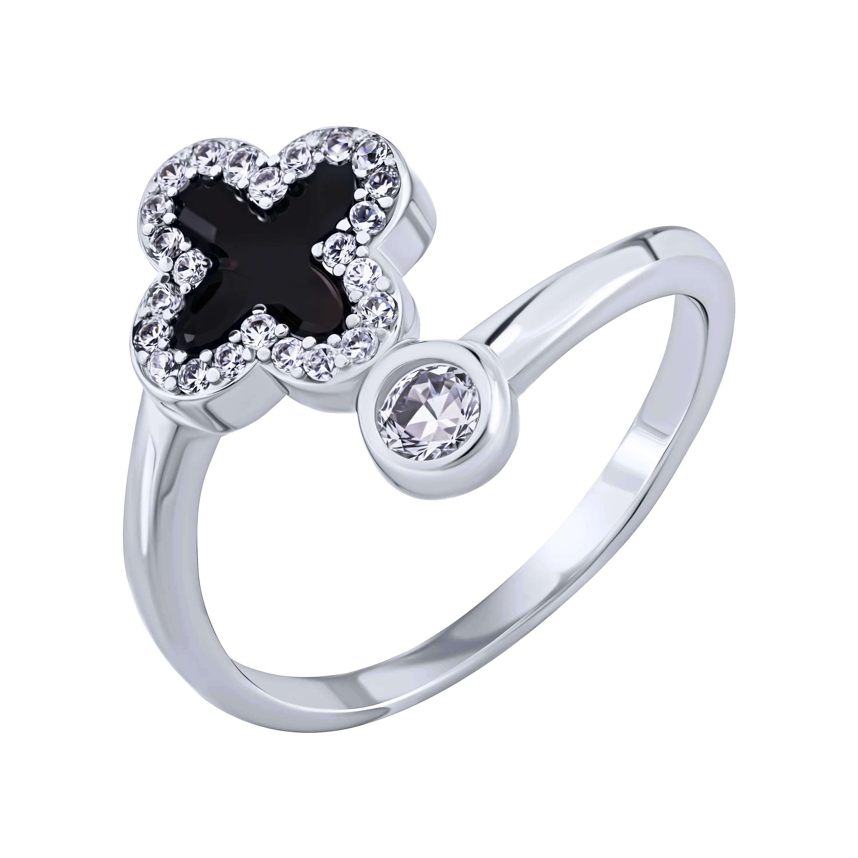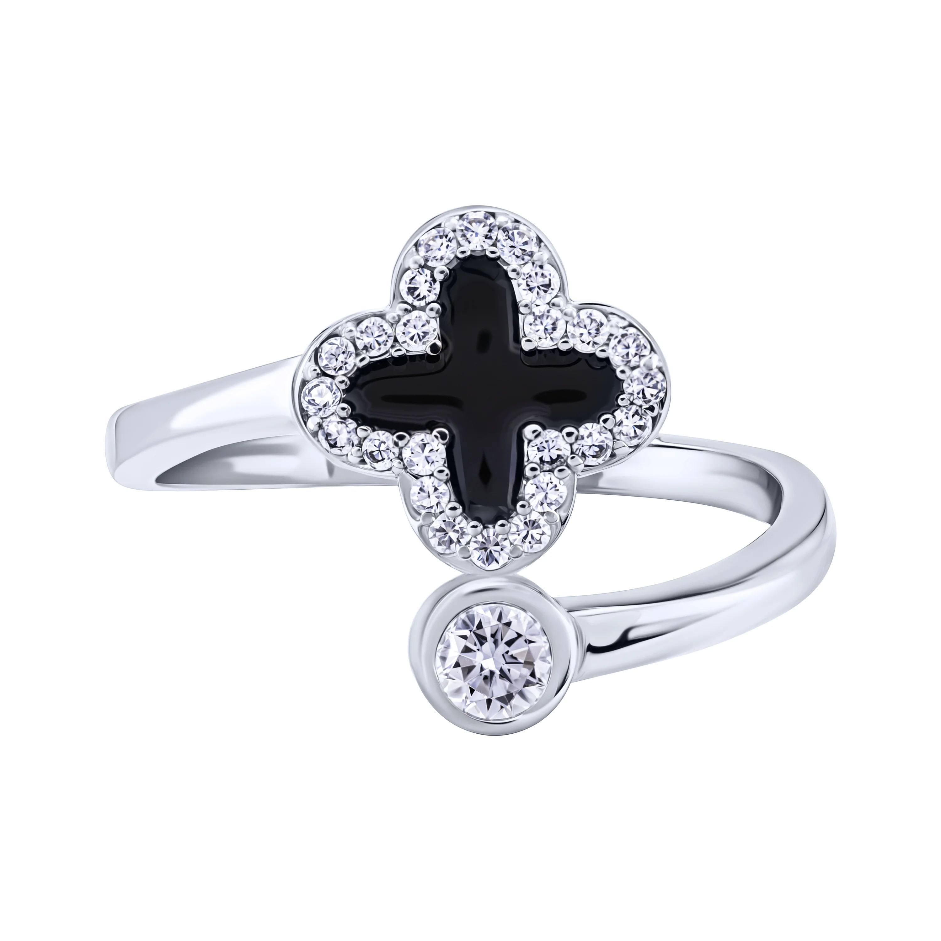 Перстень-печатка в комбінованому золоті з доріжкою з фіанітів та емаллю - 1874594
