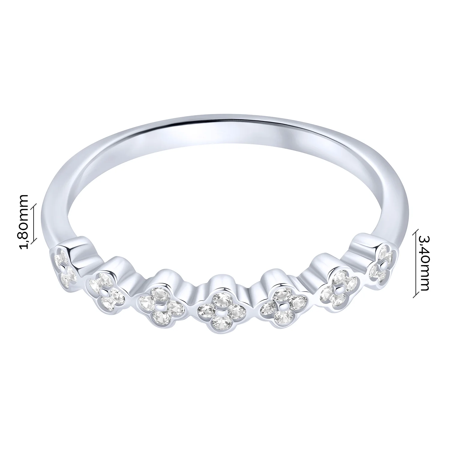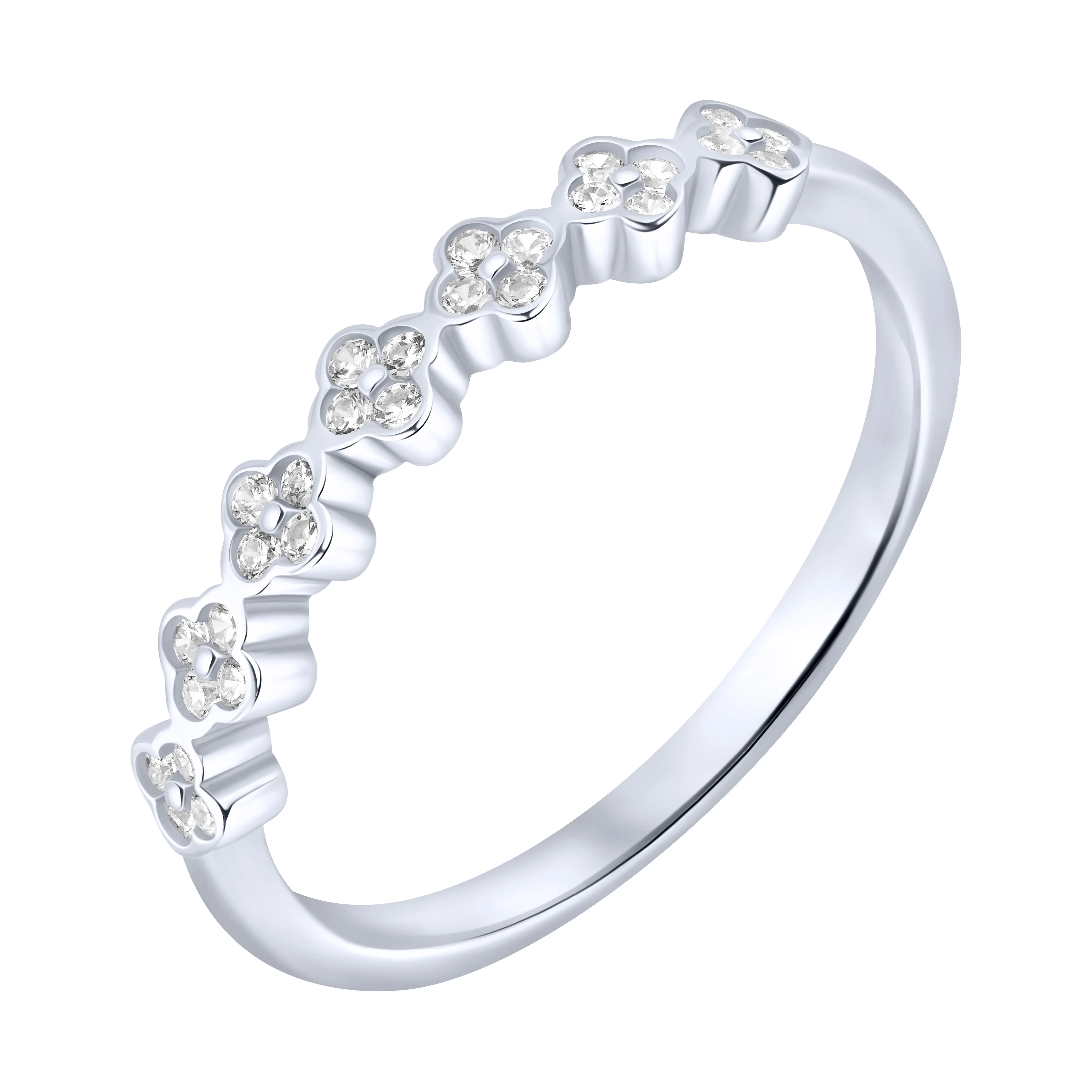 Срібна каблучка з фіанітами "Квіти" - 2159475