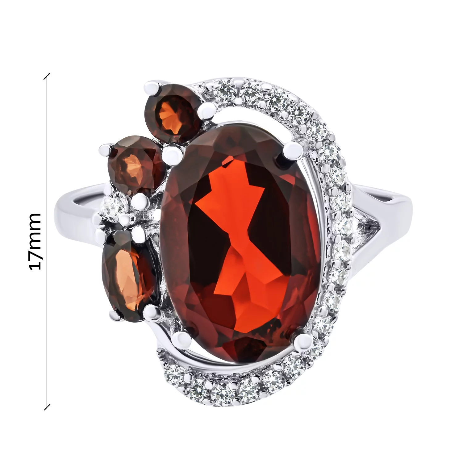 Каблучка подвійна зі срібла з фіанітами та ланцюжками на фалангу - 1528915