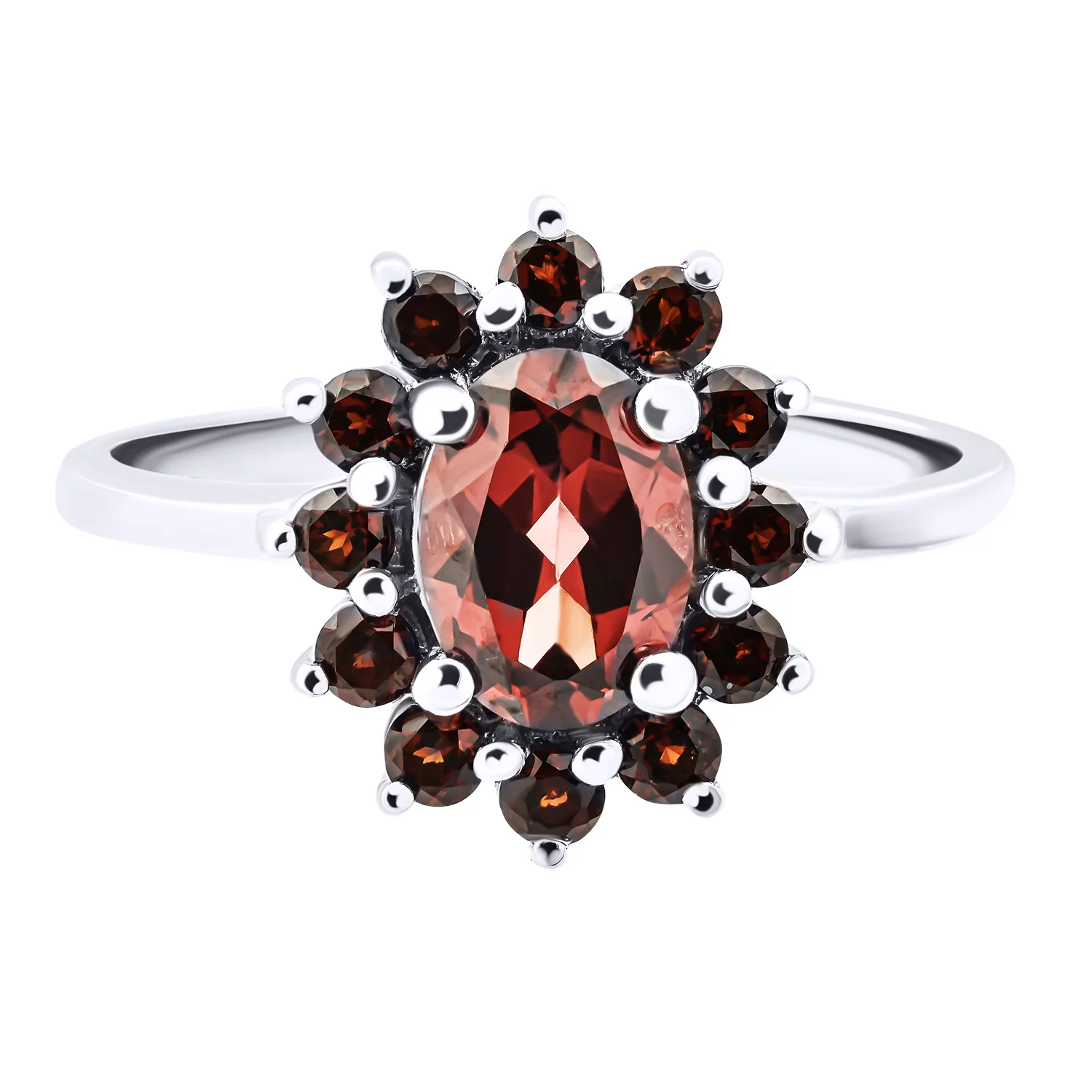Срібна каблучка з гранатом у формі квітки - 1524691