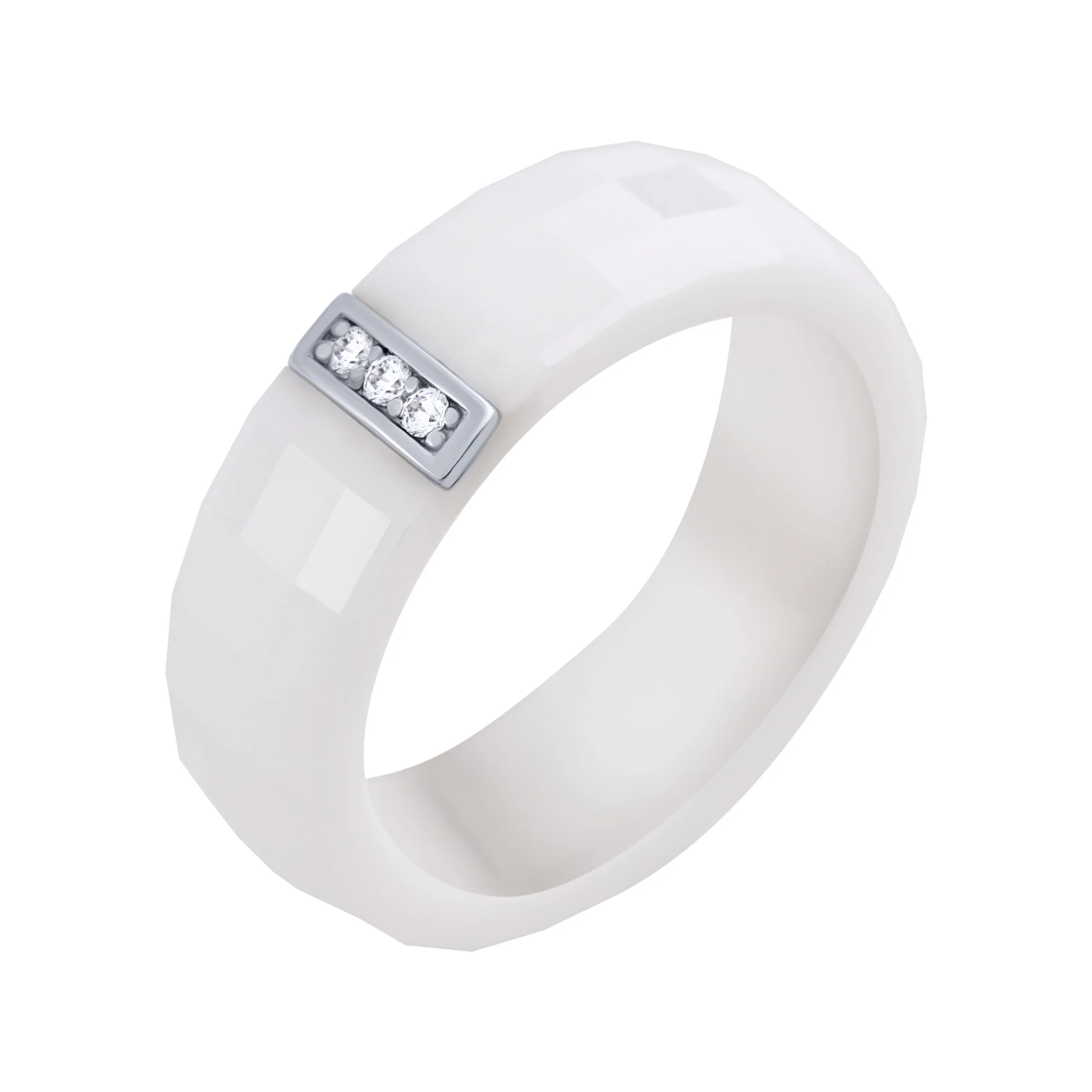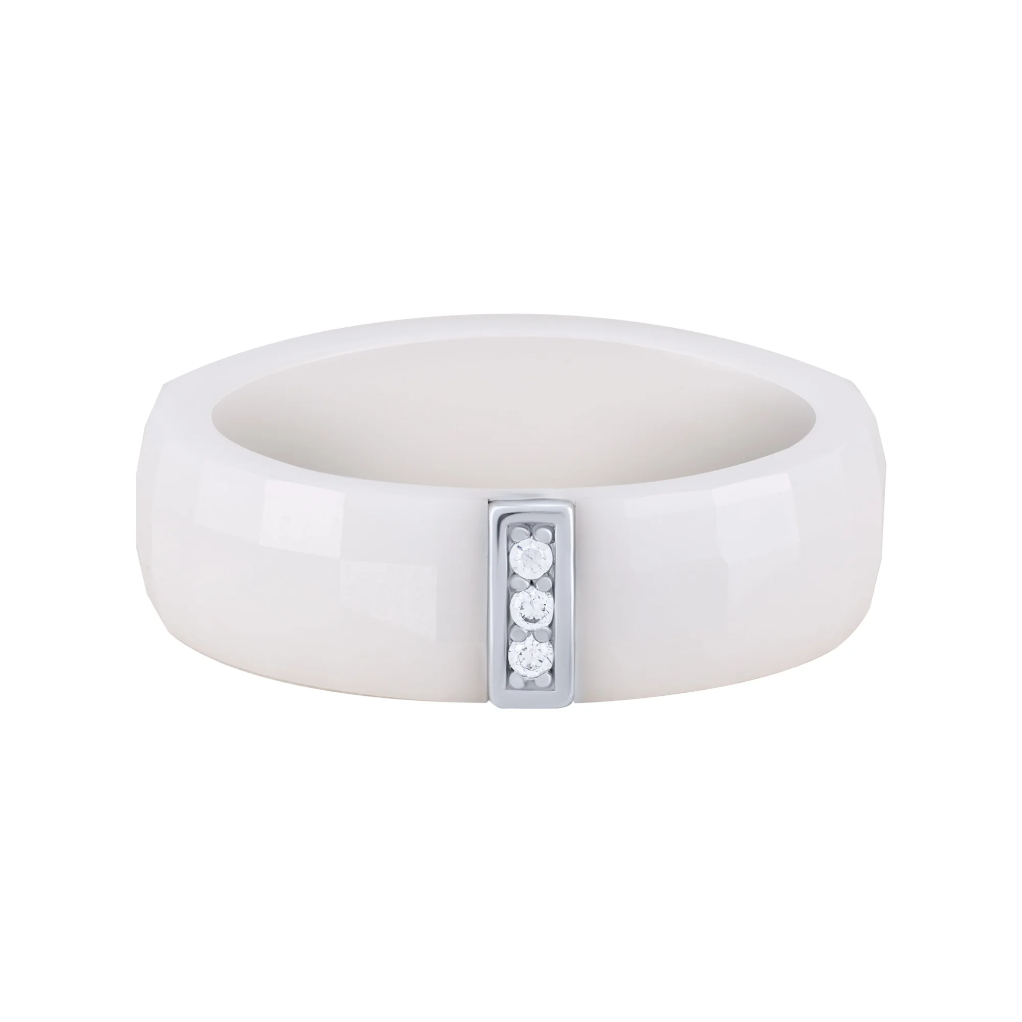 Керамічна каблучка зі вставкою зі срібла та фіанітами - 2104486