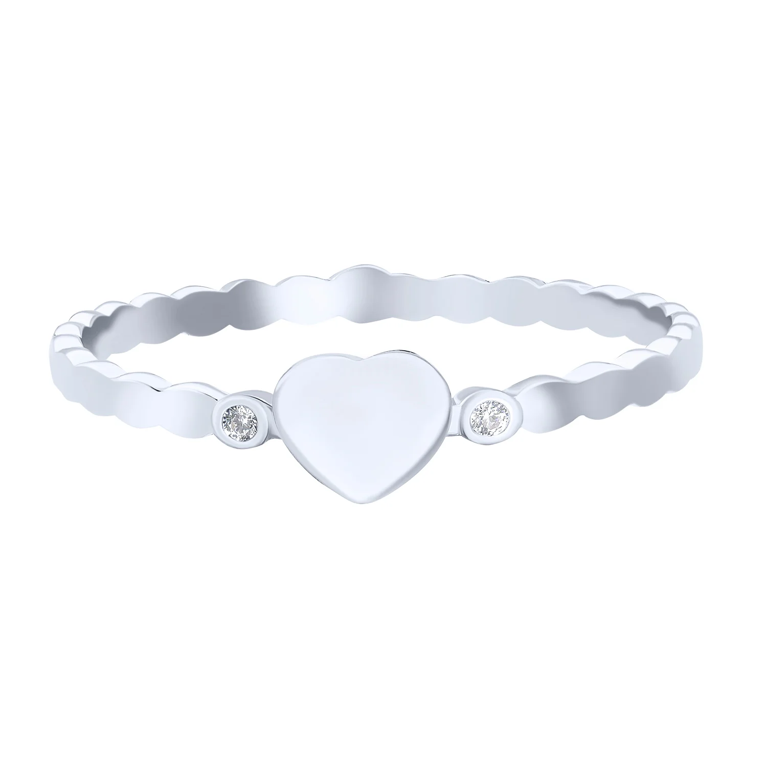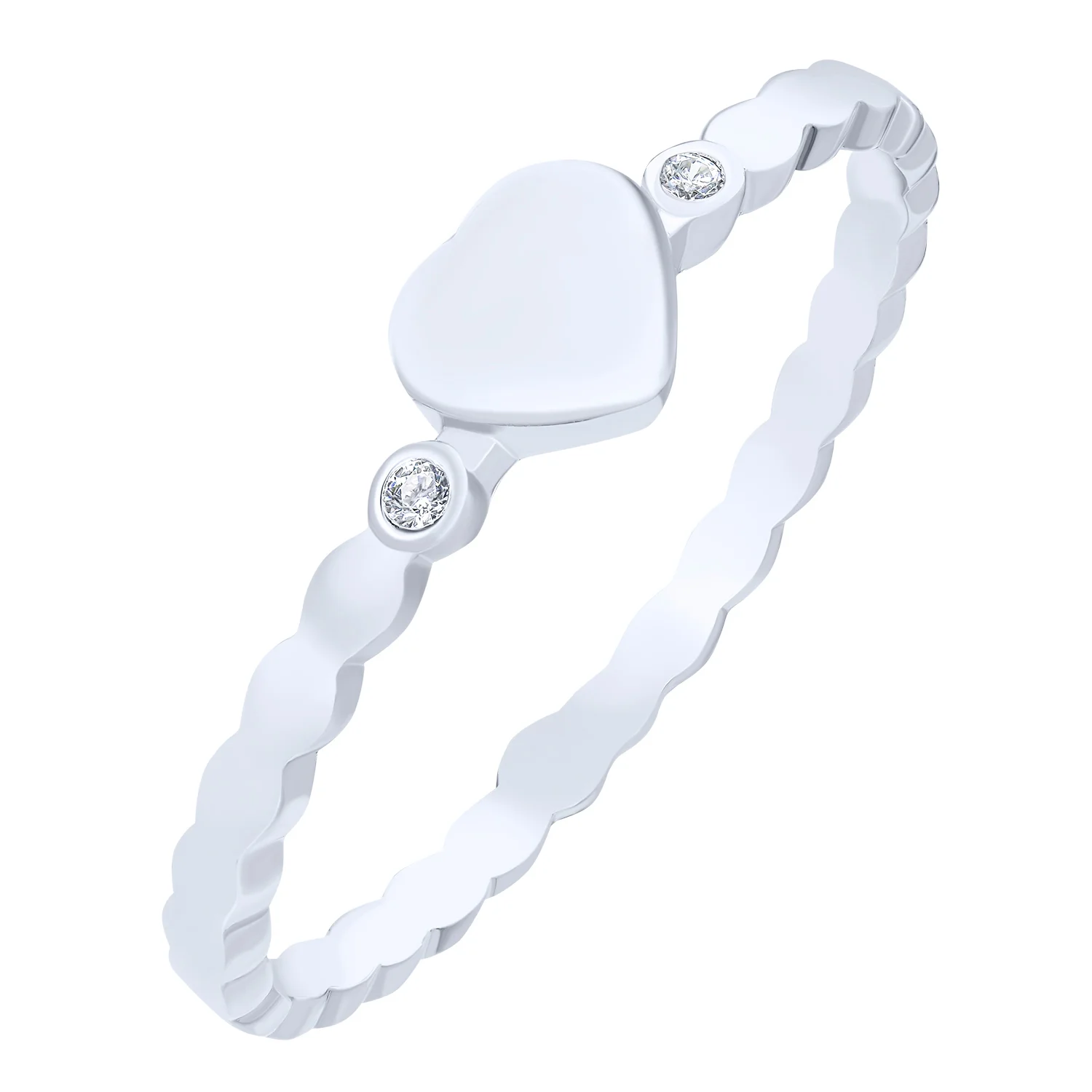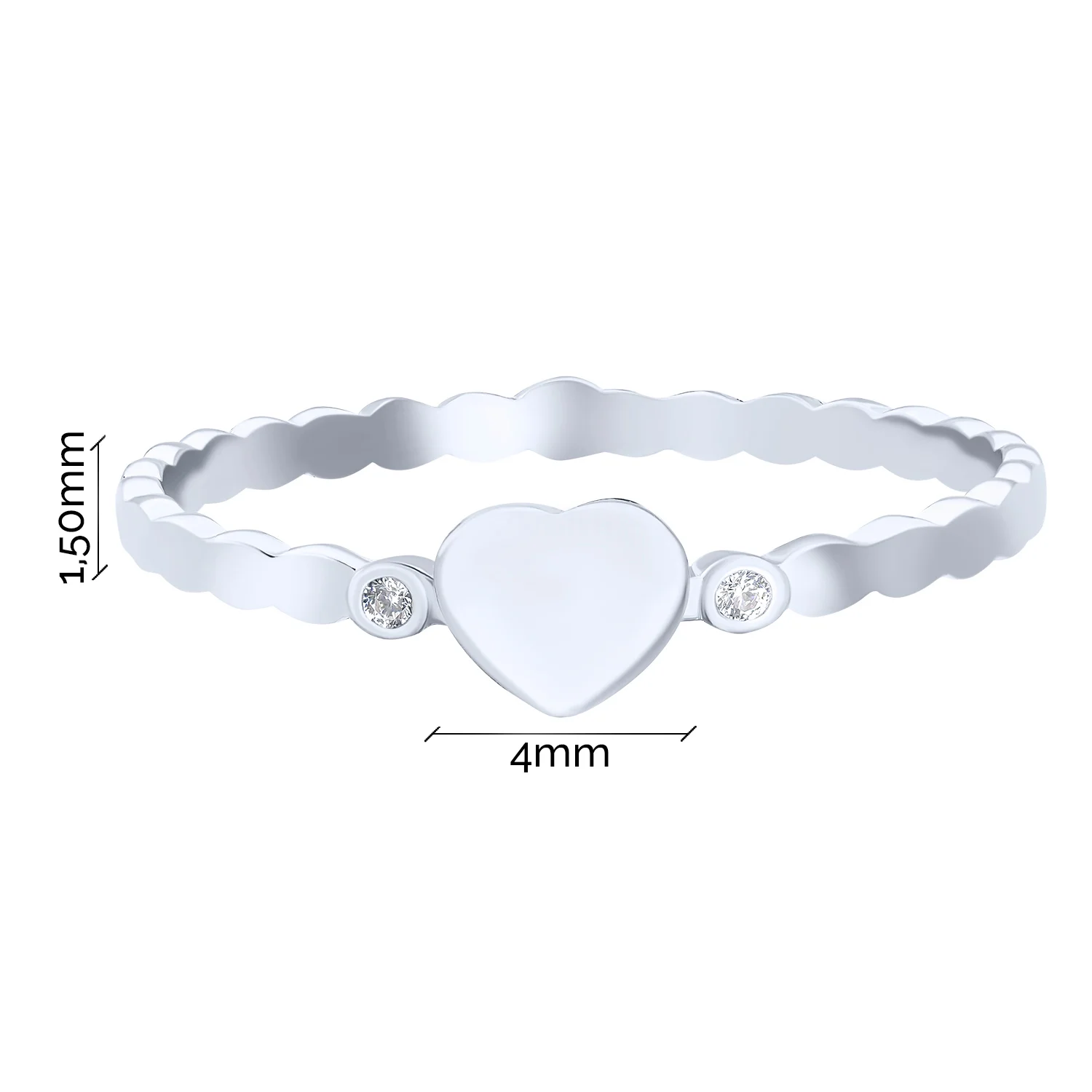 Срібна каблучка "Сердечко" з фіанітами - 1611475