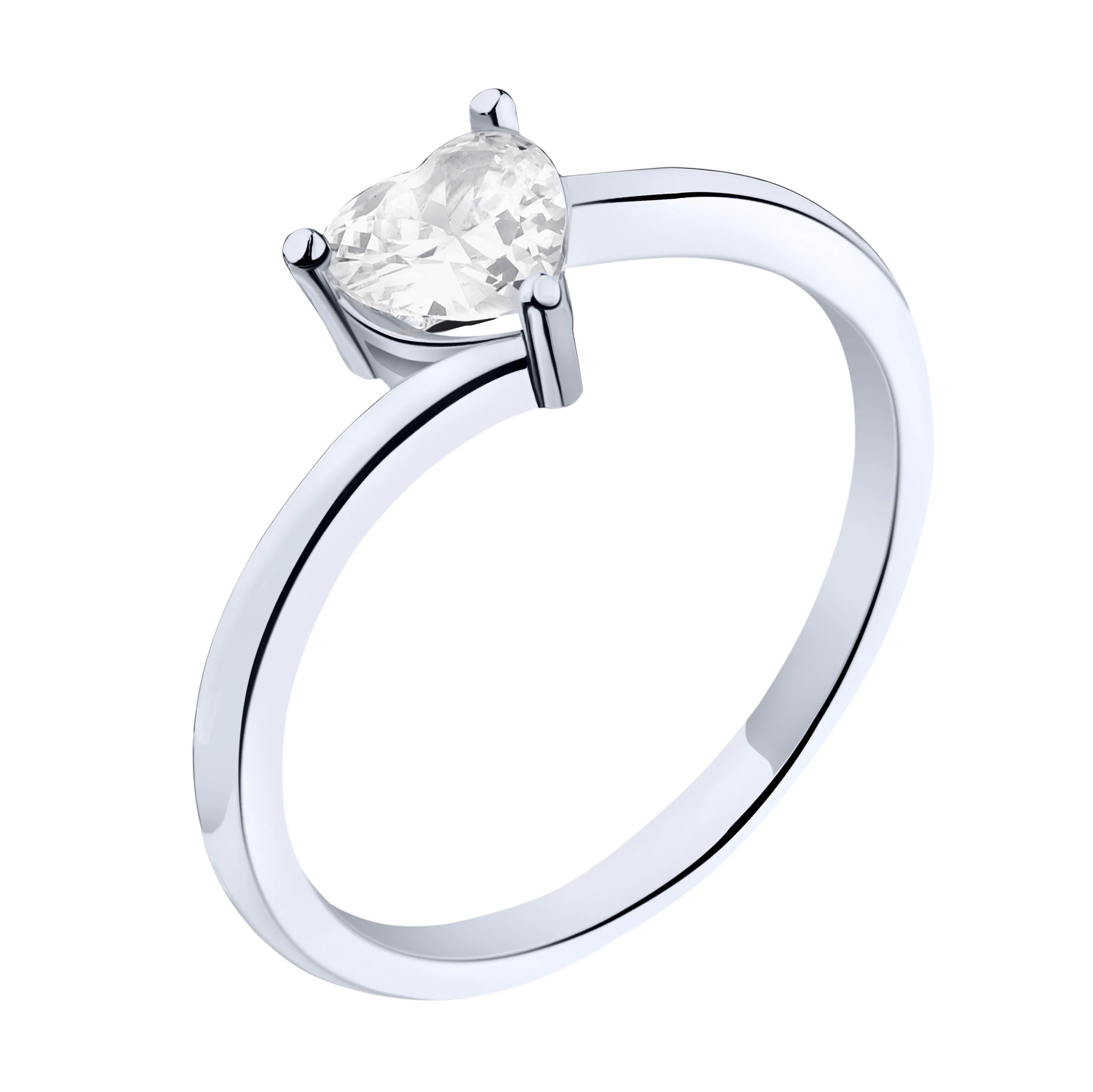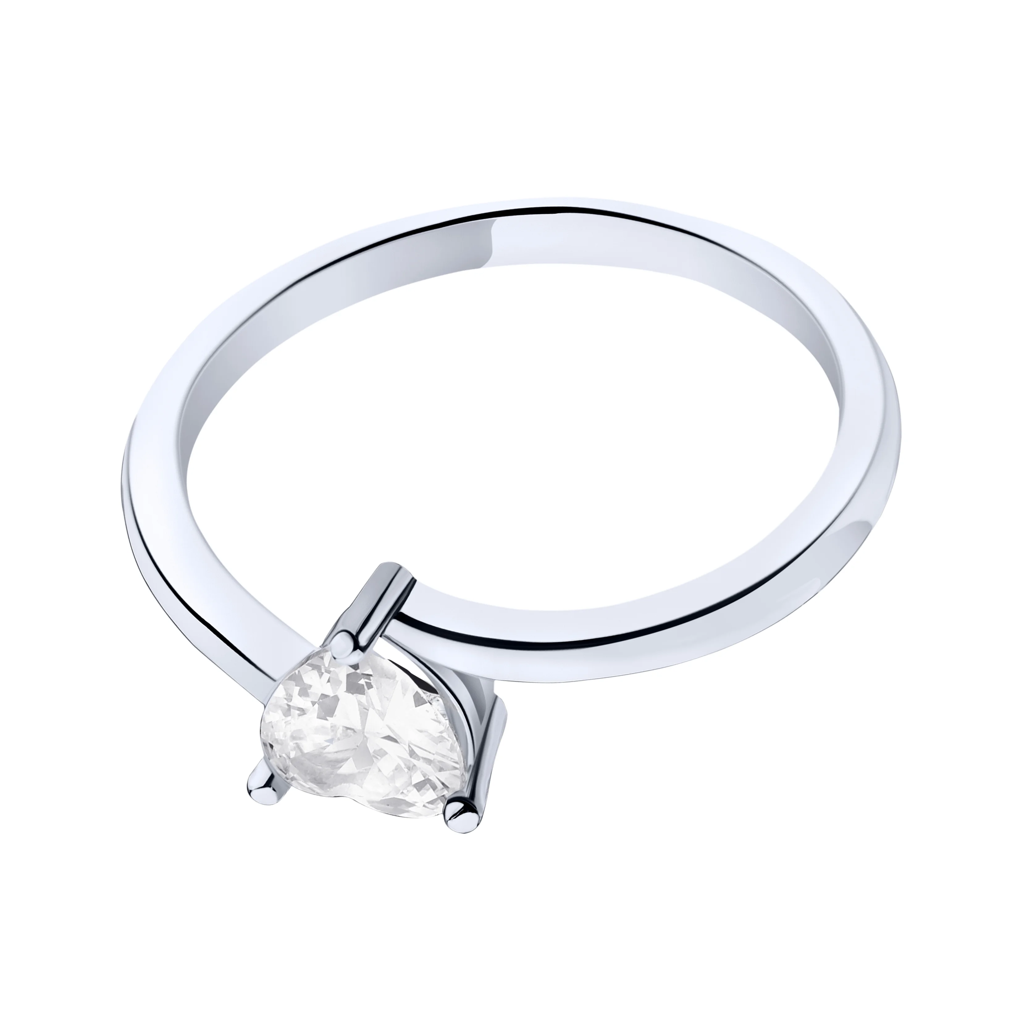 Срібна каблучка "Серце" з фіанітом - 2210993