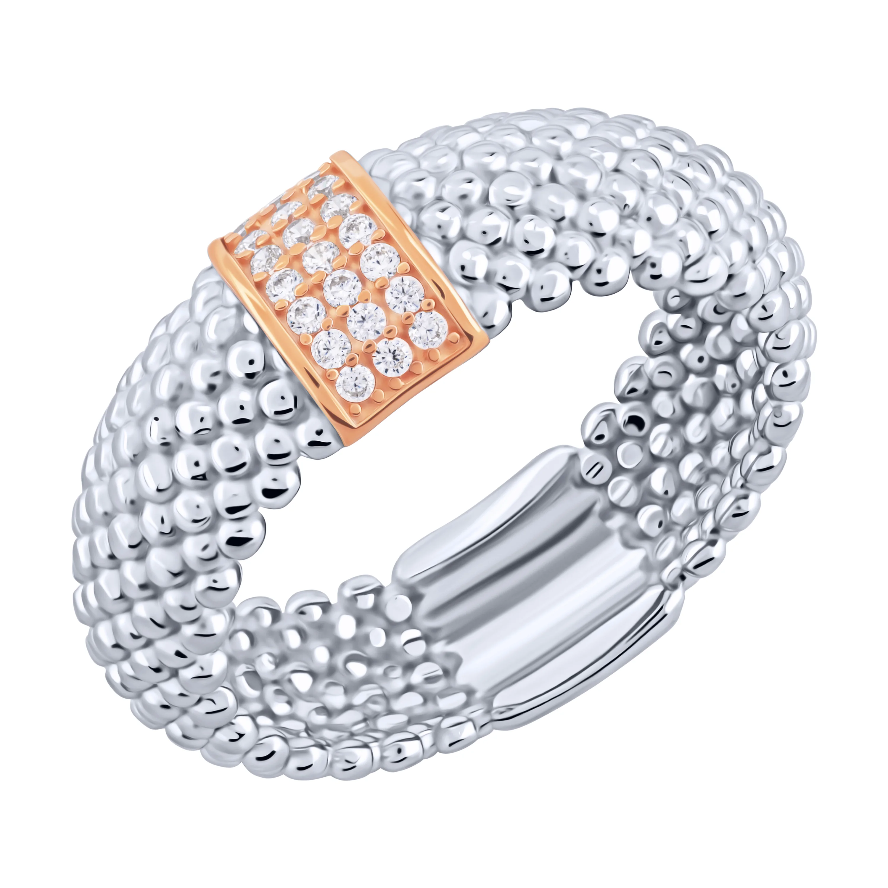 Срібна каблучка "Кульки попкорн" з фіанатами - 2107961