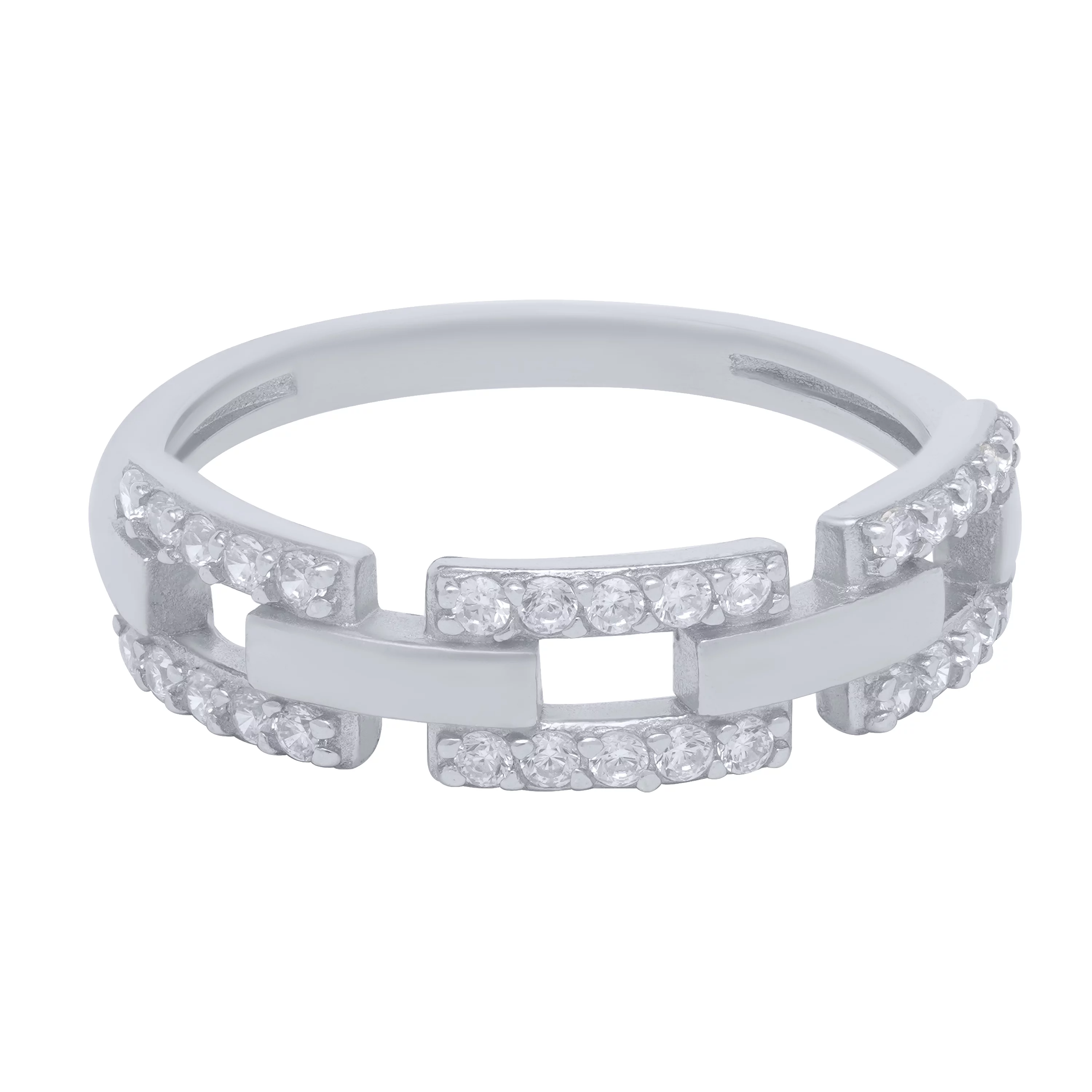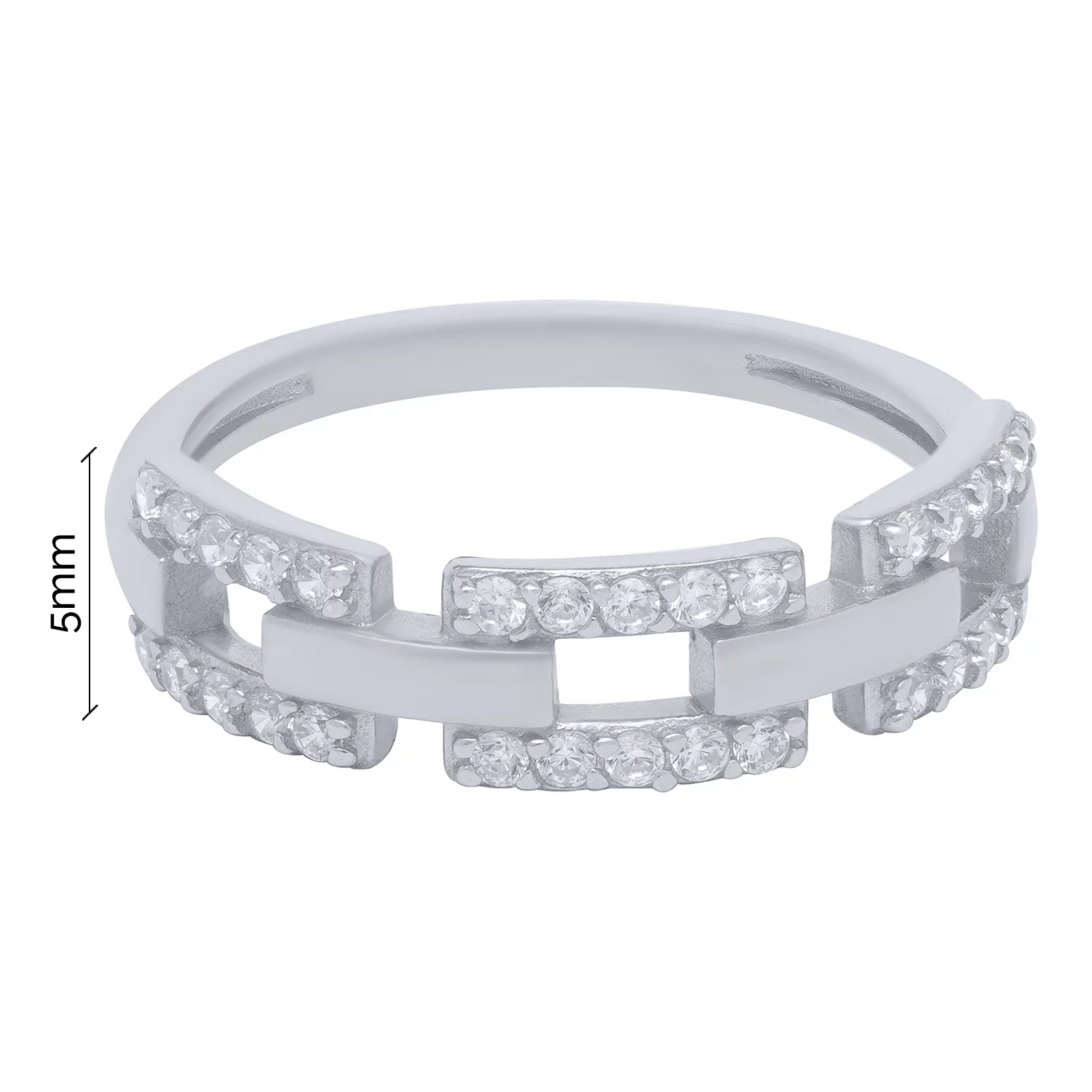 Срібна каблучка "Ланки" з фіанітами - 1682871