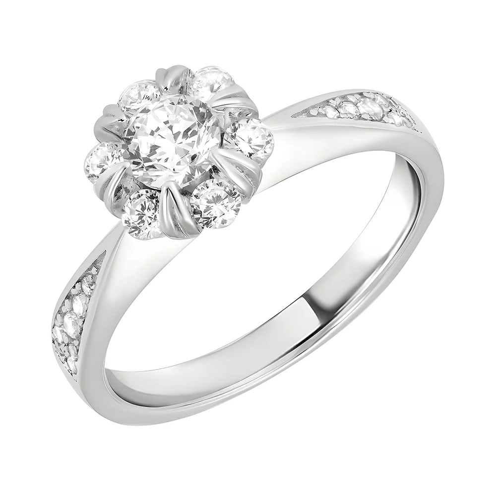 Срібна каблучка "Квітка" з фіанітами - 1519790