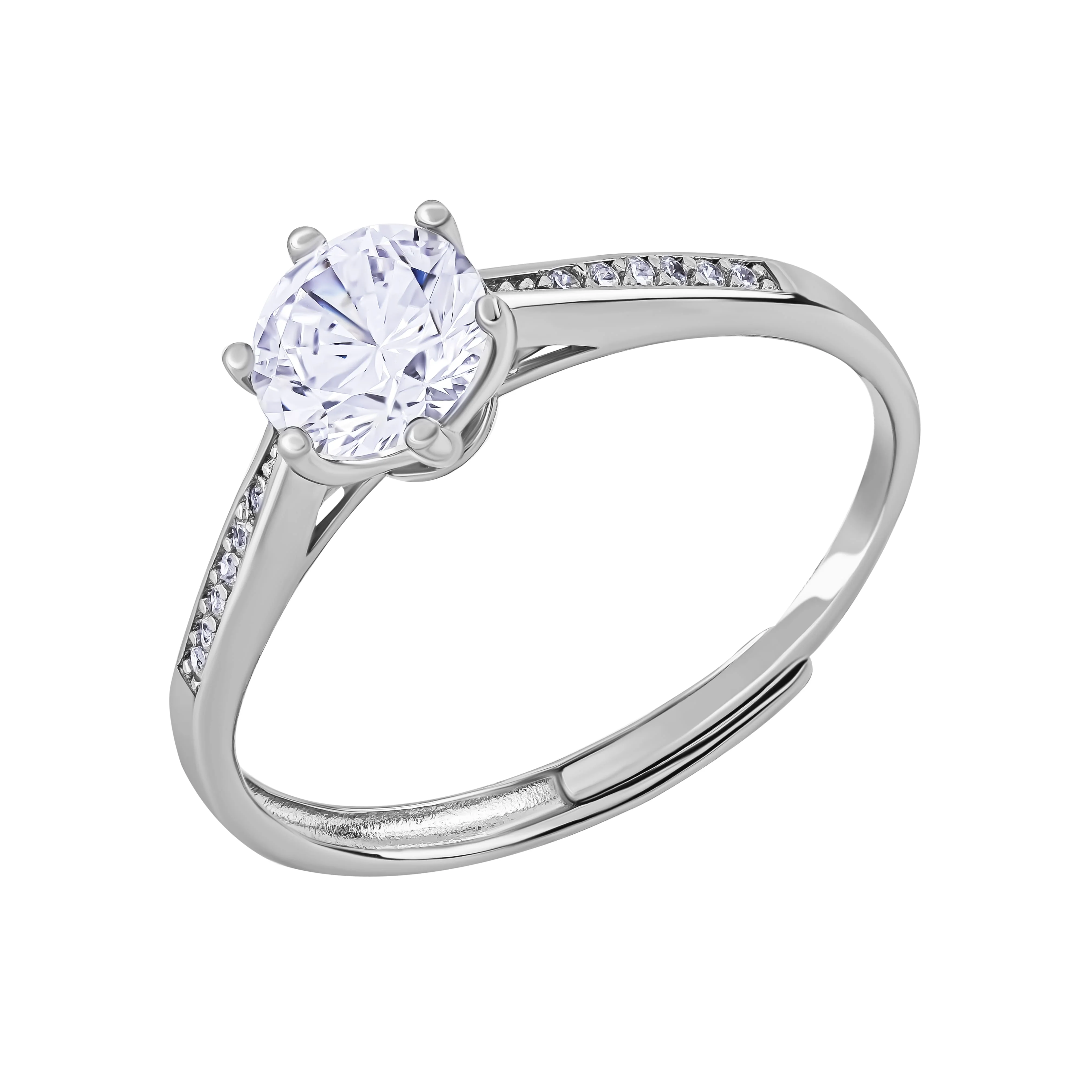 Срібна розсувна каблучка з фіанітами у сріблі - 1991372