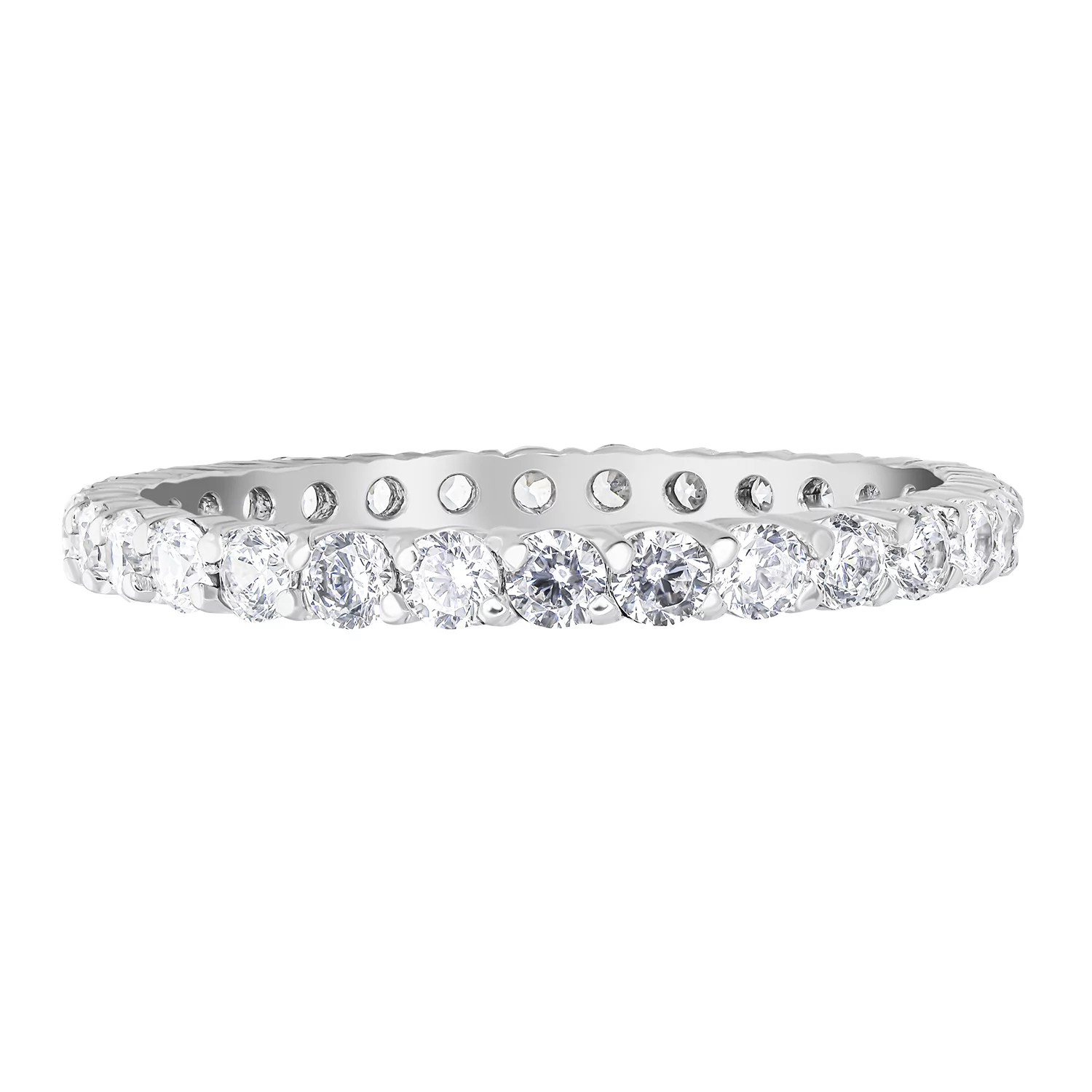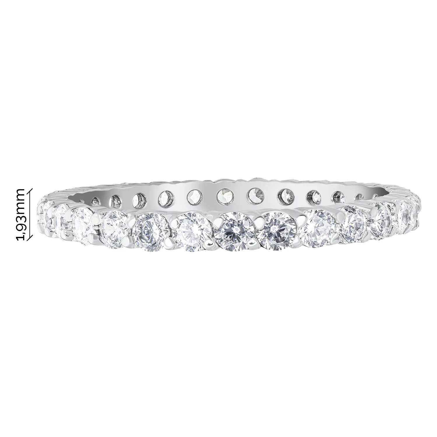 Серебряное тонкое кольцо с фианитами — изысканная классика в мире женских ювелирных украшений, дополняющая любой образ — от повседневного до торжественного. Изделие выполнено из драгоценного металла 925 пробы. По всему ободку кольцо инкрустировано фианитами. Камни с круглой огранкой в корнеровой закрепке придают изделию сверкающий эффект, отражая как солнечный, так и искусственный свет. Минималистичный стиль кольца делает его универсальным украшением, которое может стать частью ювелирного ансамбля или отдельным элементом образа.