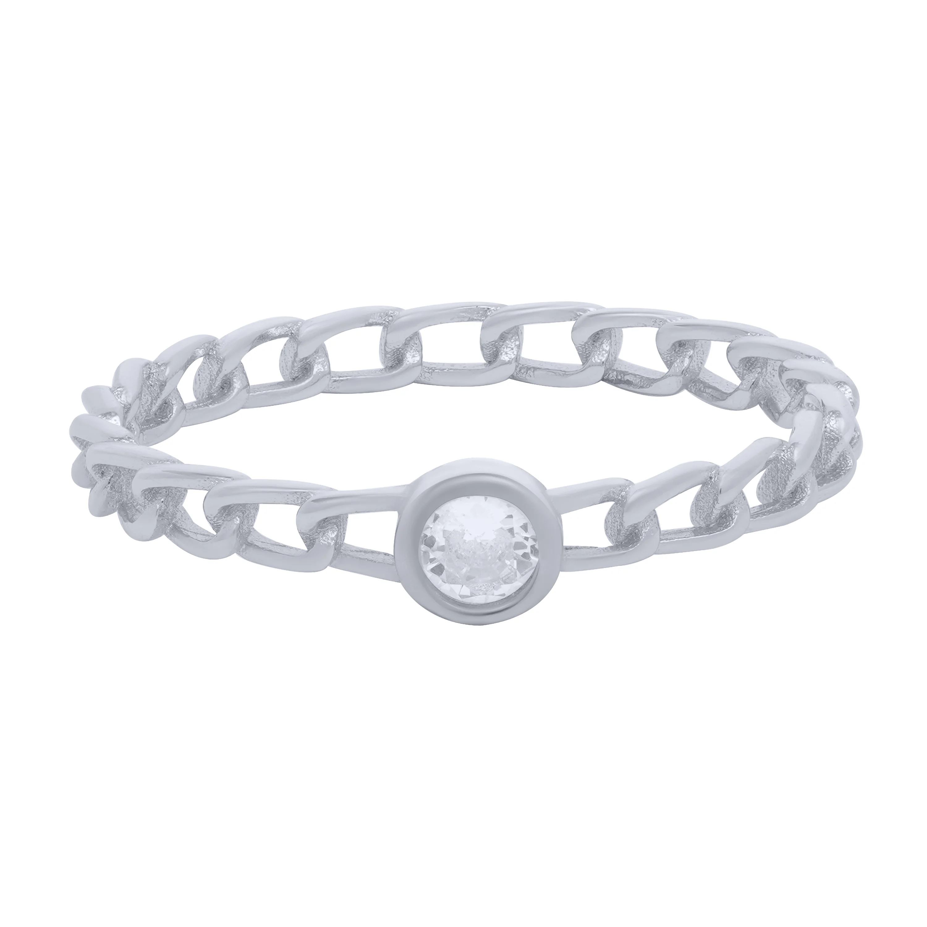 Срібна тонка каблучка у формі ланцюжка з фіанітом - 1683119
