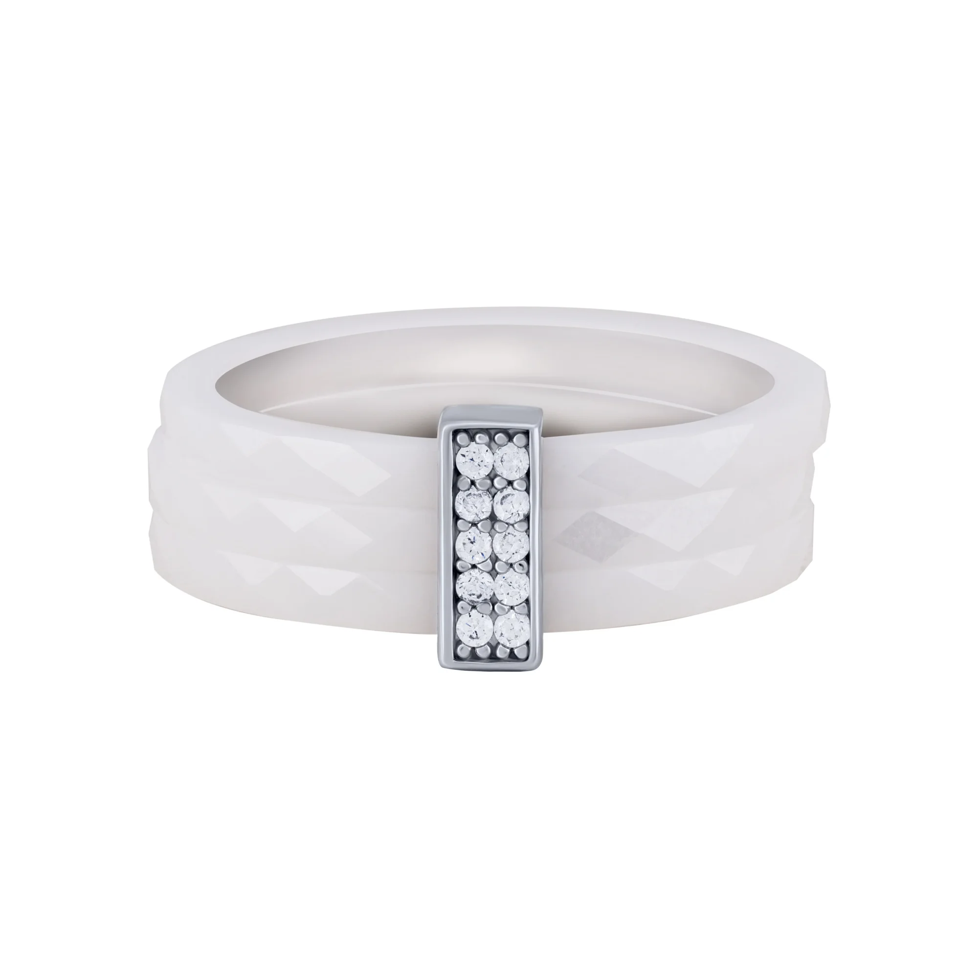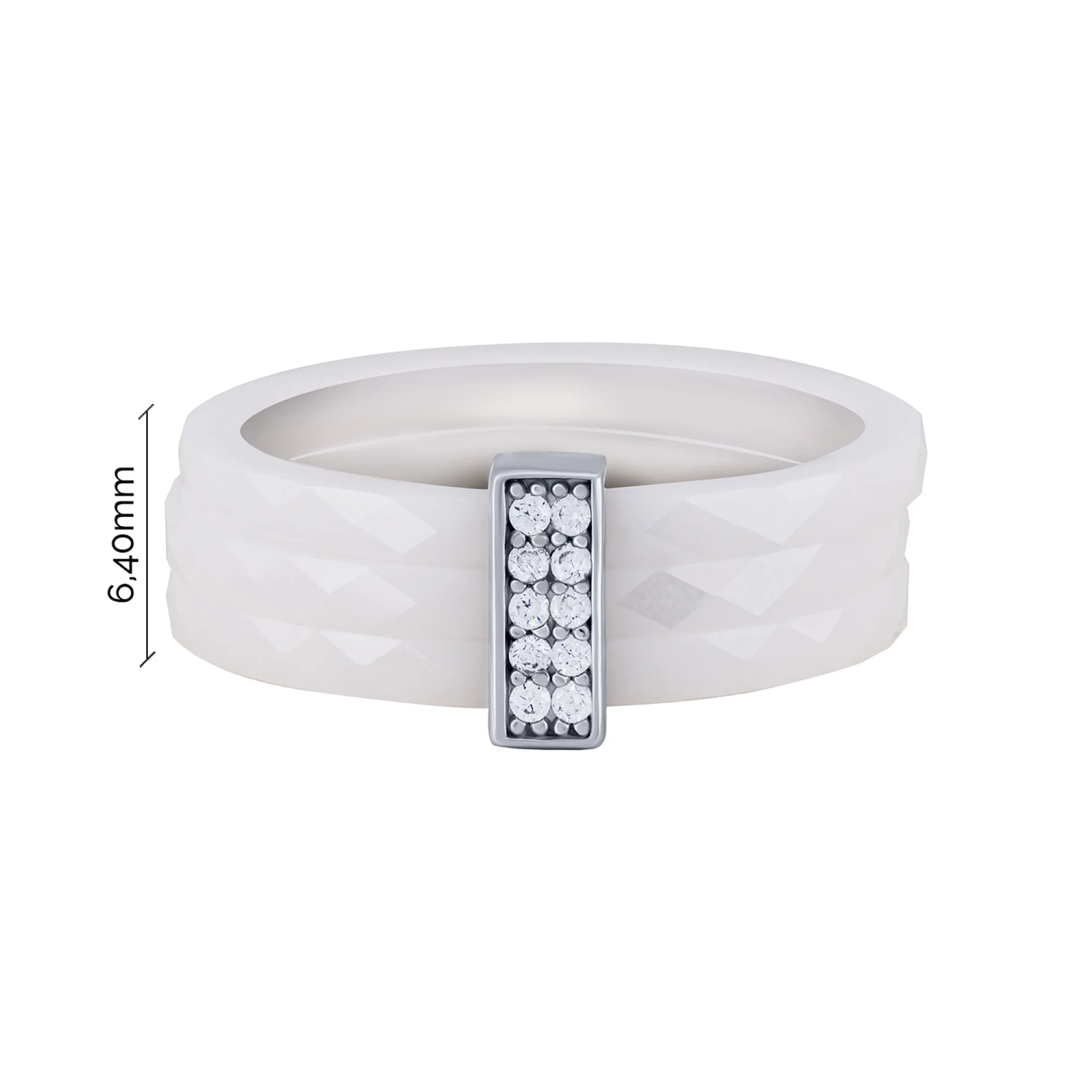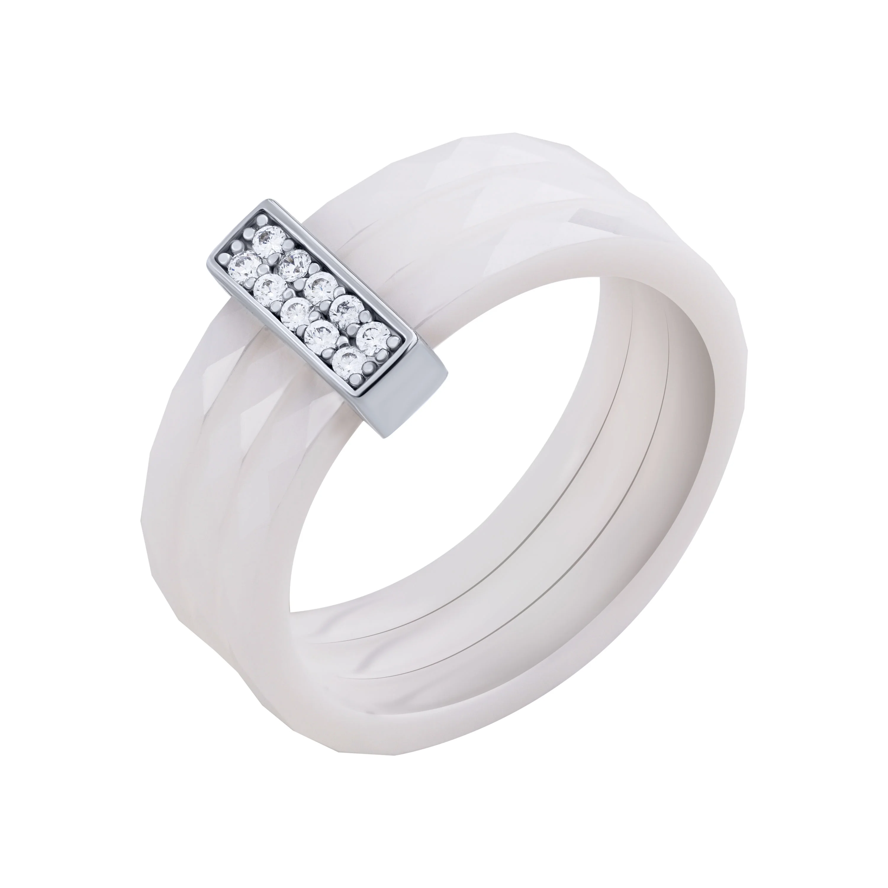 Керамічна потрійна каблучка зі вставкою зі срібла та фіанітами - 2104487