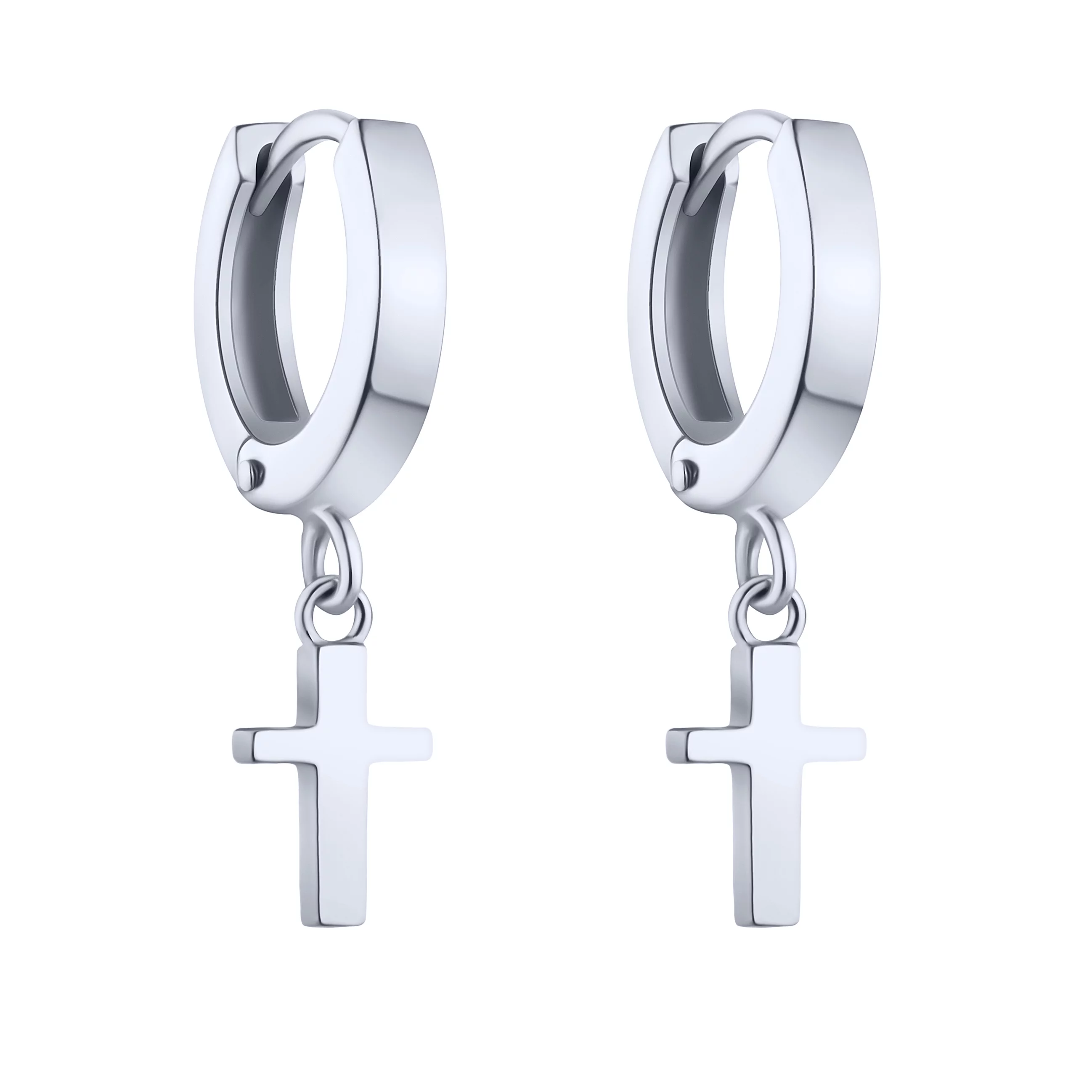 Срібні сережки-кільця з підвісами "Хрестик" - 1957284