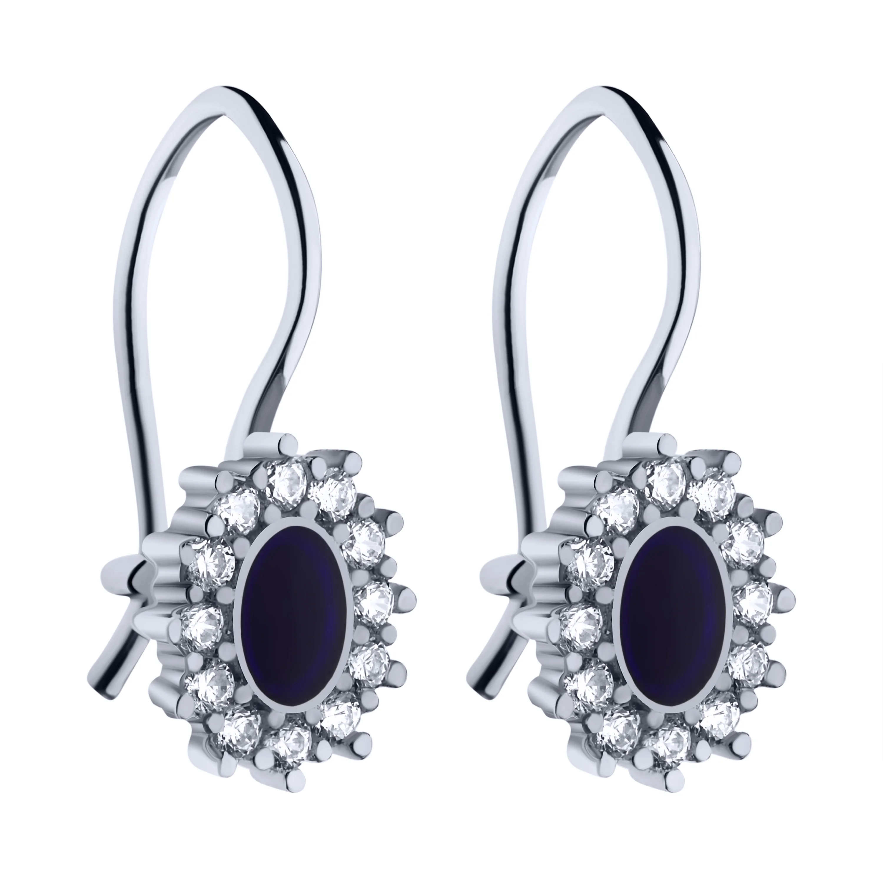 Срібні дитячі сережки-петлі з фіанітами і емаллю - 2004851