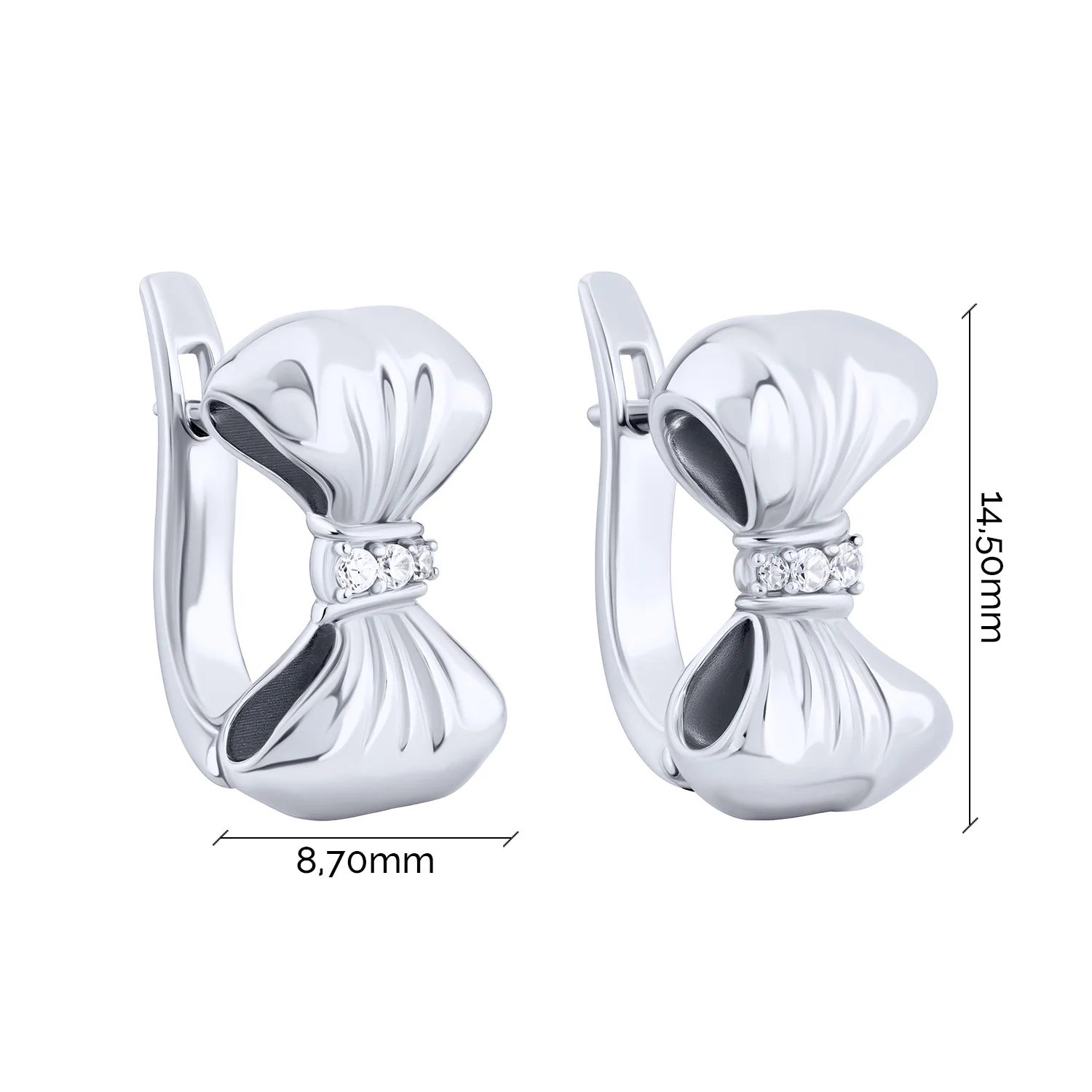 Срібні сережки "Бантик" з фіанітами - 2172651