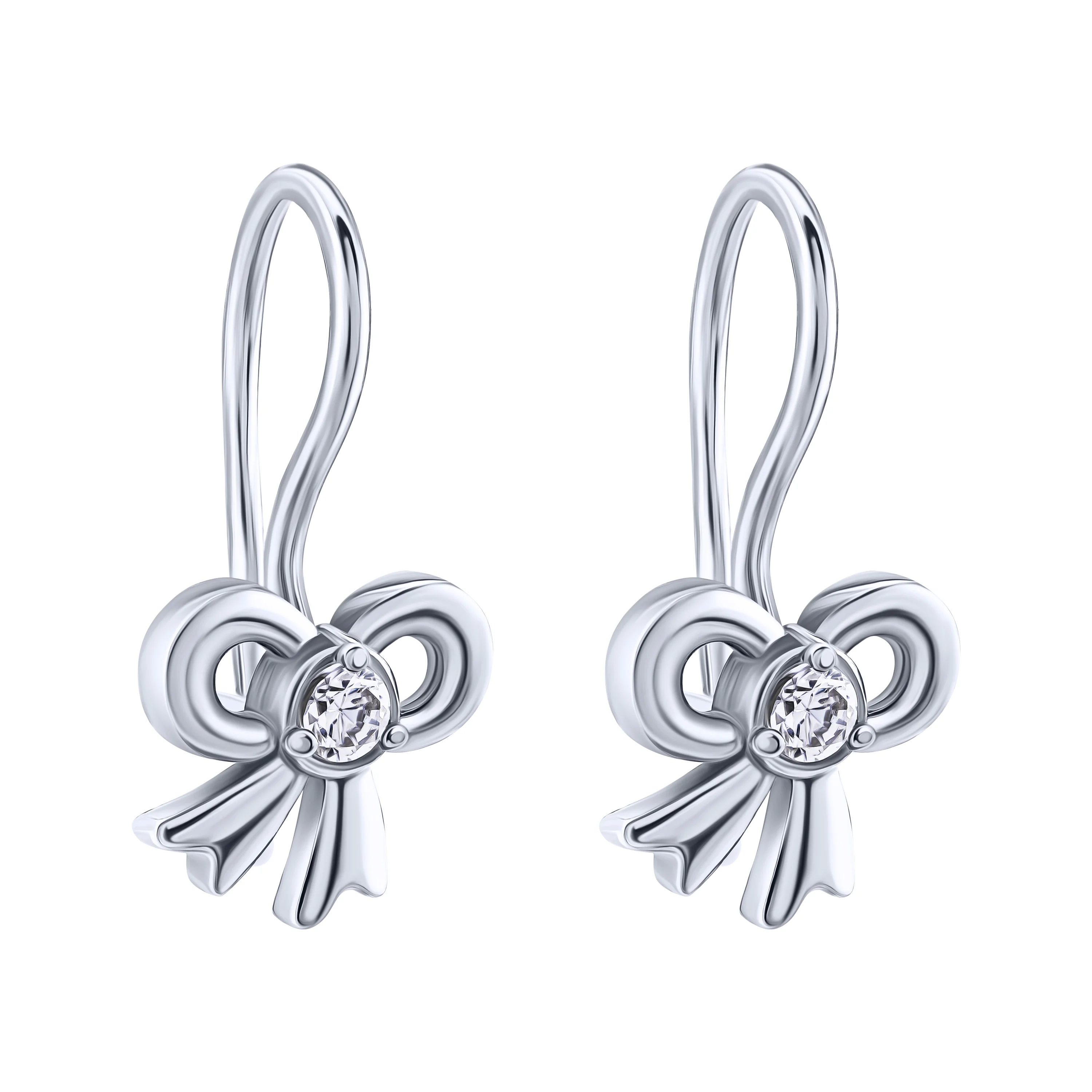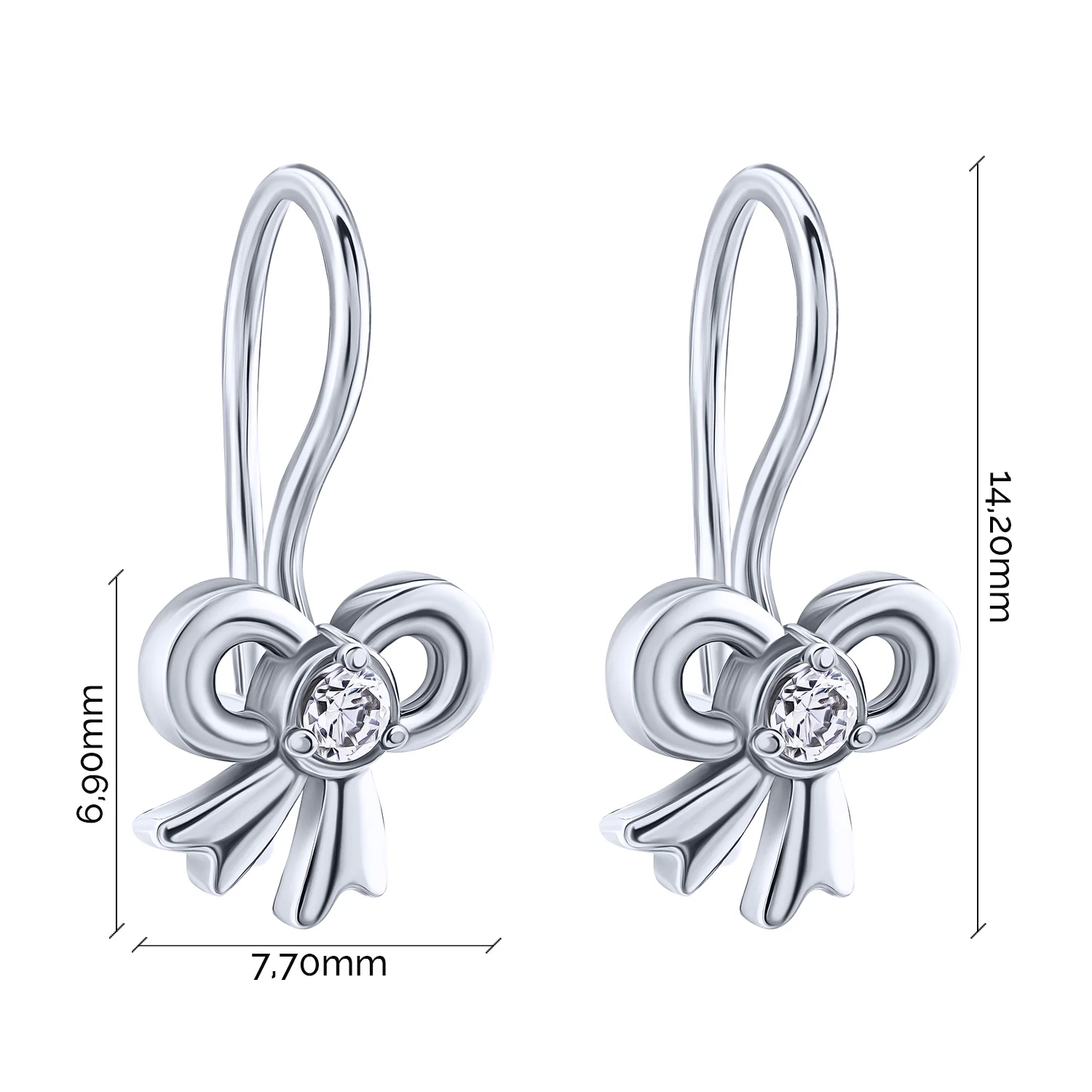 Срібні сережки-петлі "Бантик" з фіанітом - 2082895