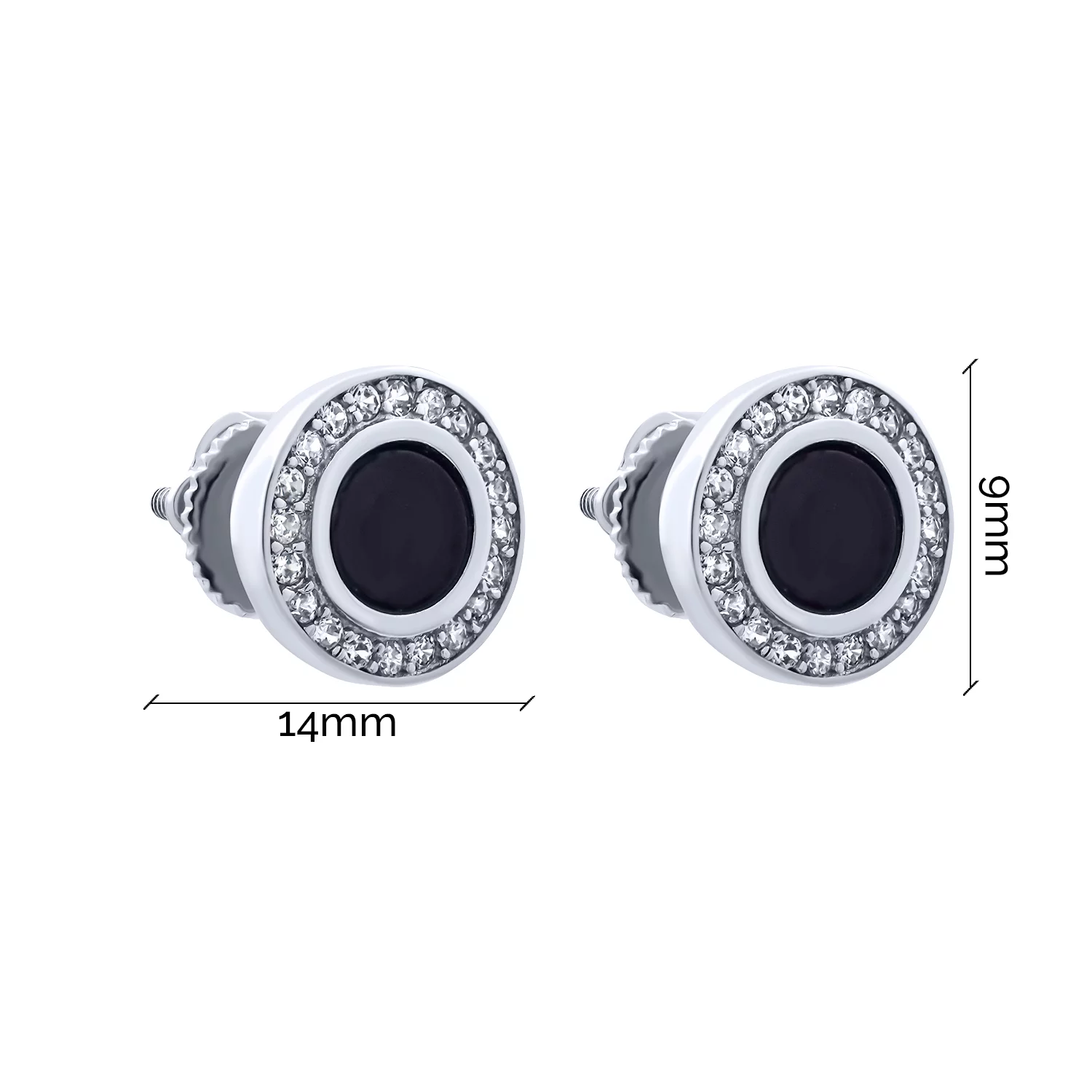 Срібні стильні сережки-пусети "Конюшина" з оніксом та фіанітами - 1940309