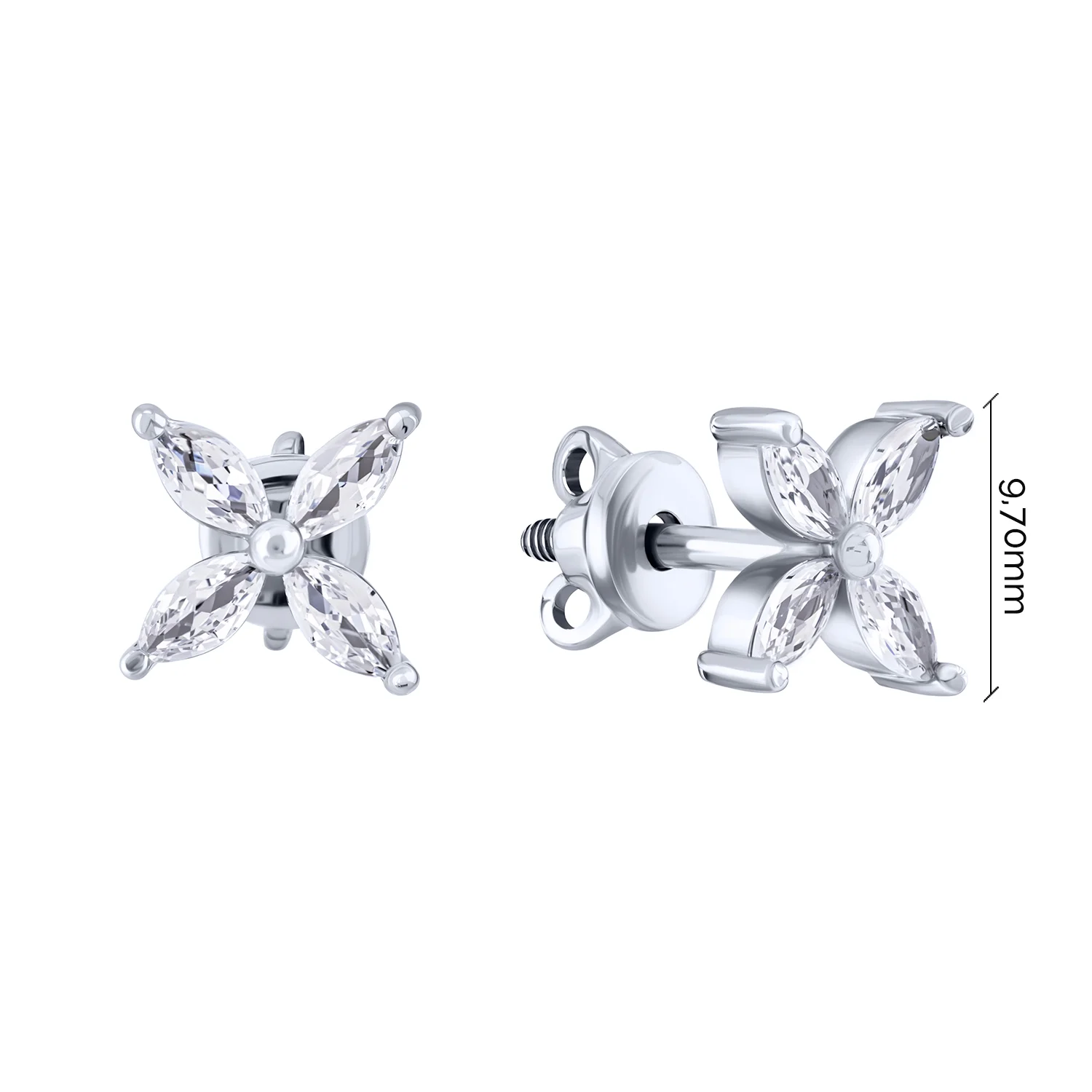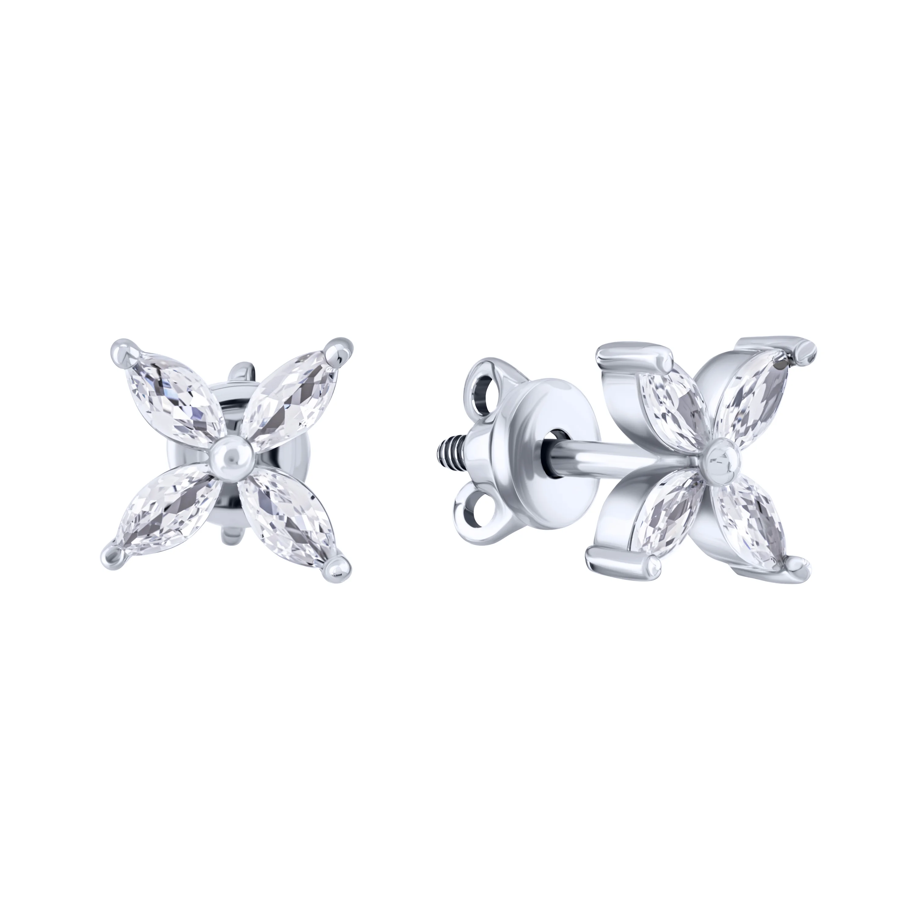 Срібні сережки "Квітка" з фіанітами - 2101781
