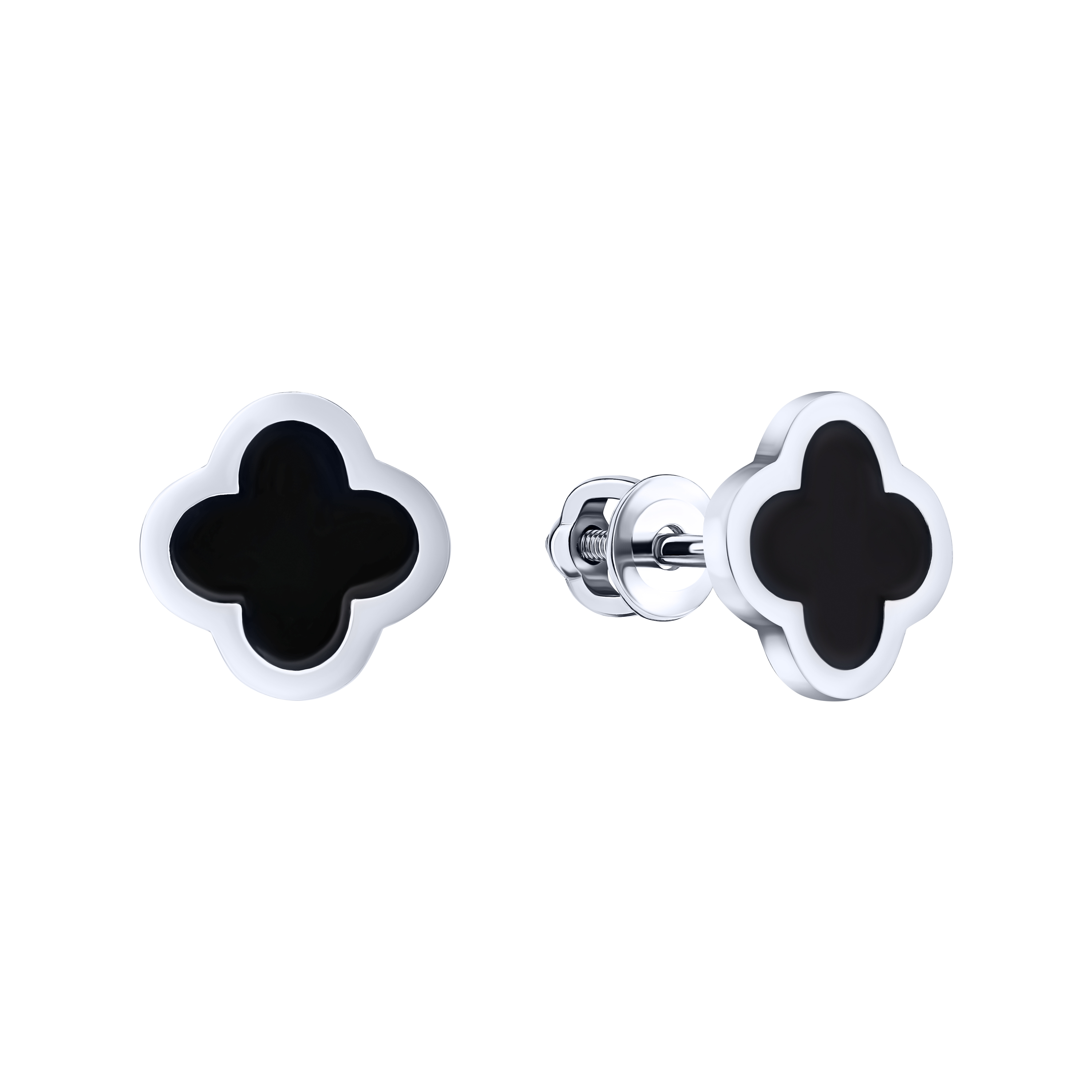 Срібні сережки-пусети "Конюшина" з емаллю - 2182598