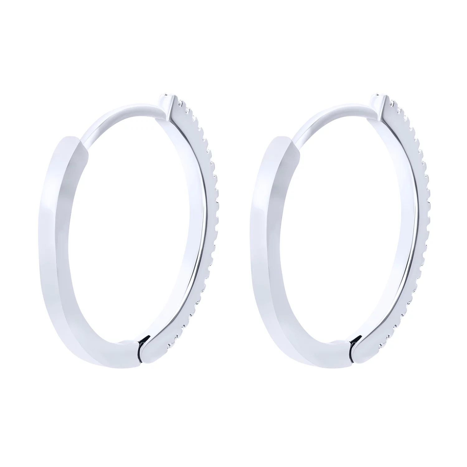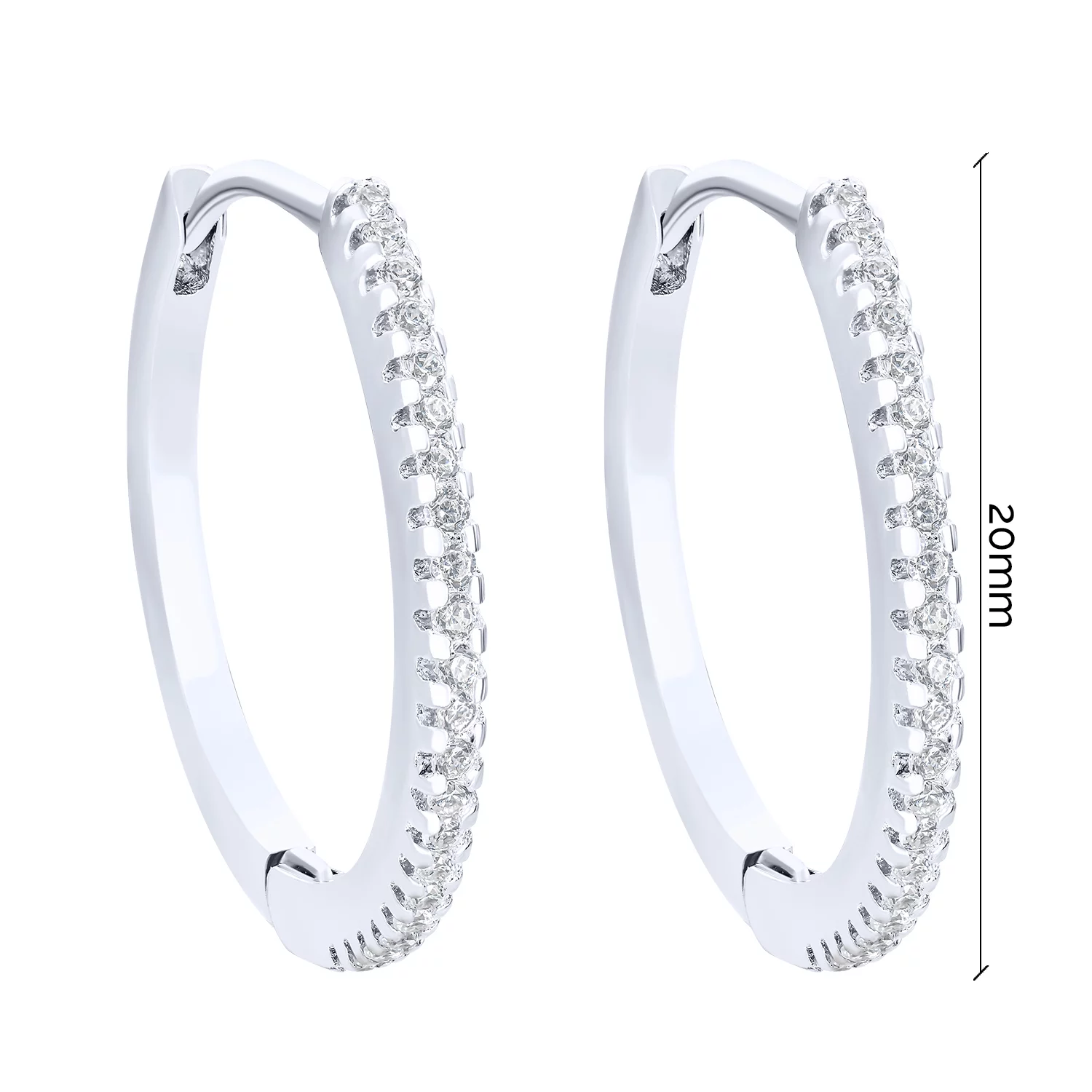 Срібні сережки-кільця з підвіскою "Сердечко" з емаллю та фіанітами - 1683297