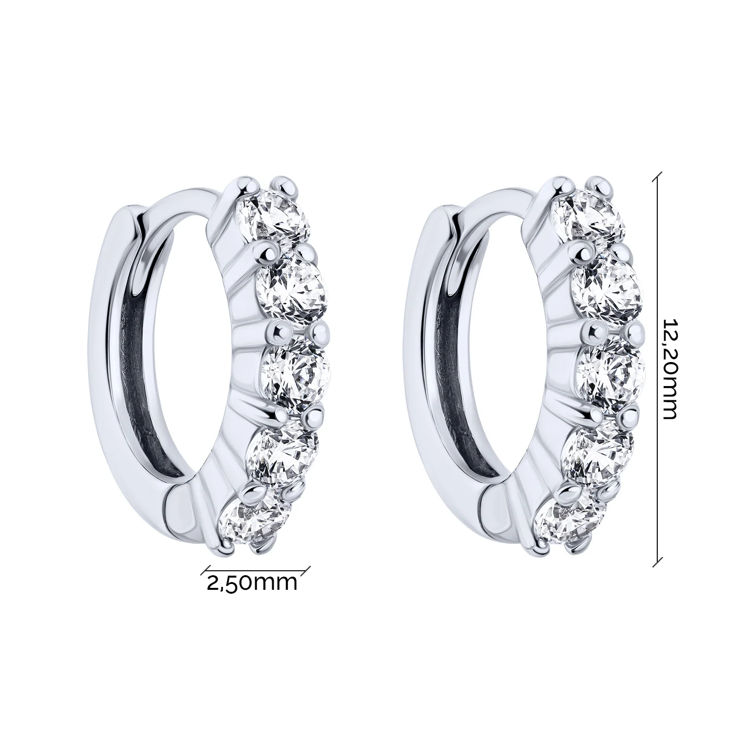 Срібні сережки-кільця з доріжкою фіанітів - 2172653