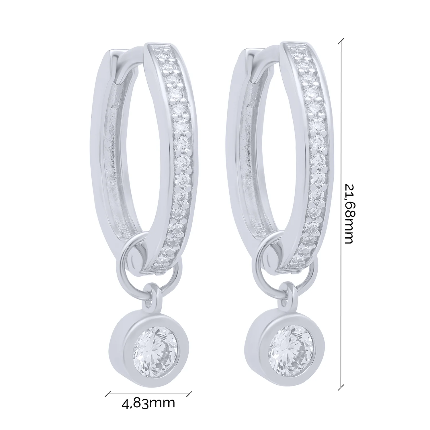 Сережки з червоного золота з підвісами з фіанітами і перлиною - 1690617