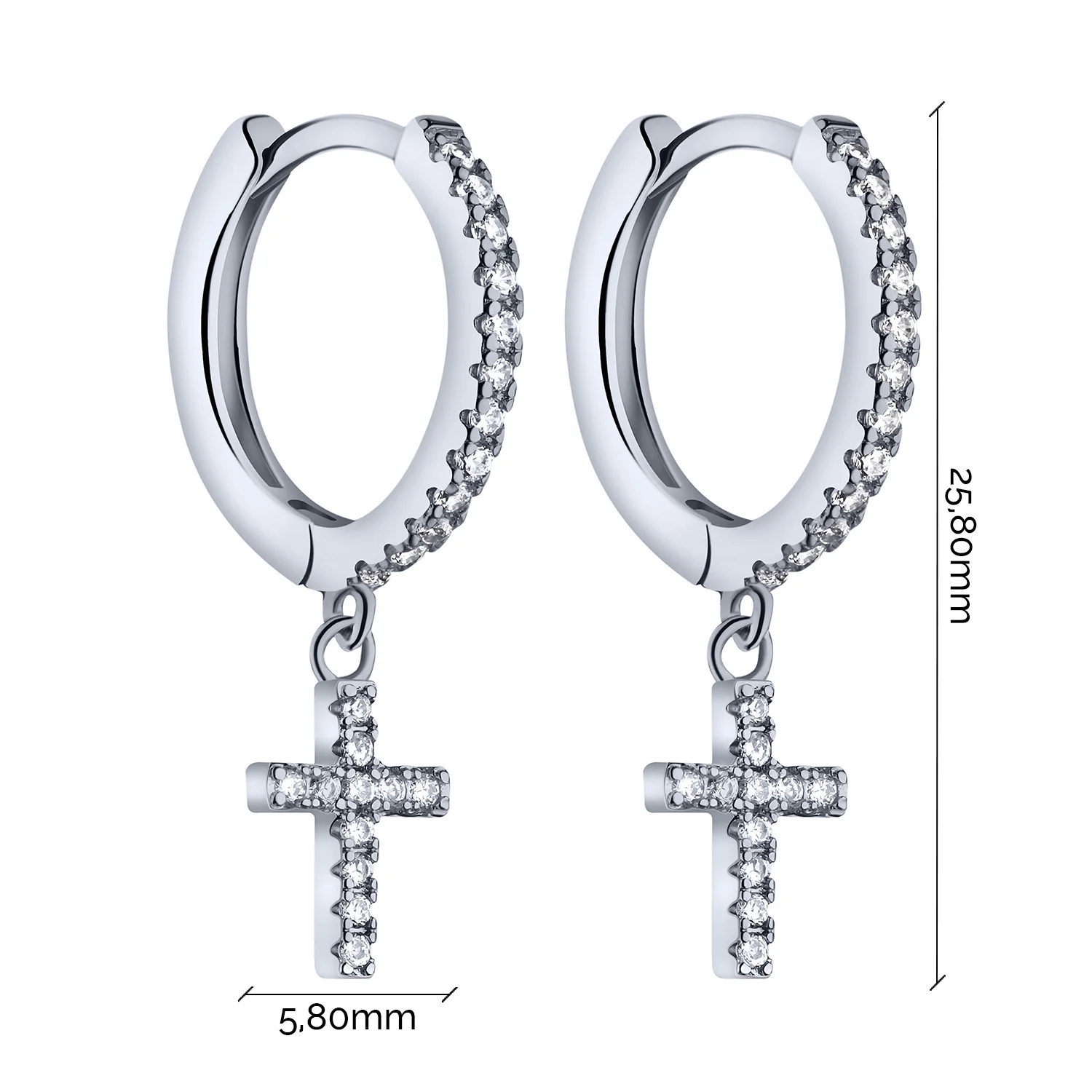 Срібні сережки-кільця "Хрестики" з підвісом і фіанітами - 2013922