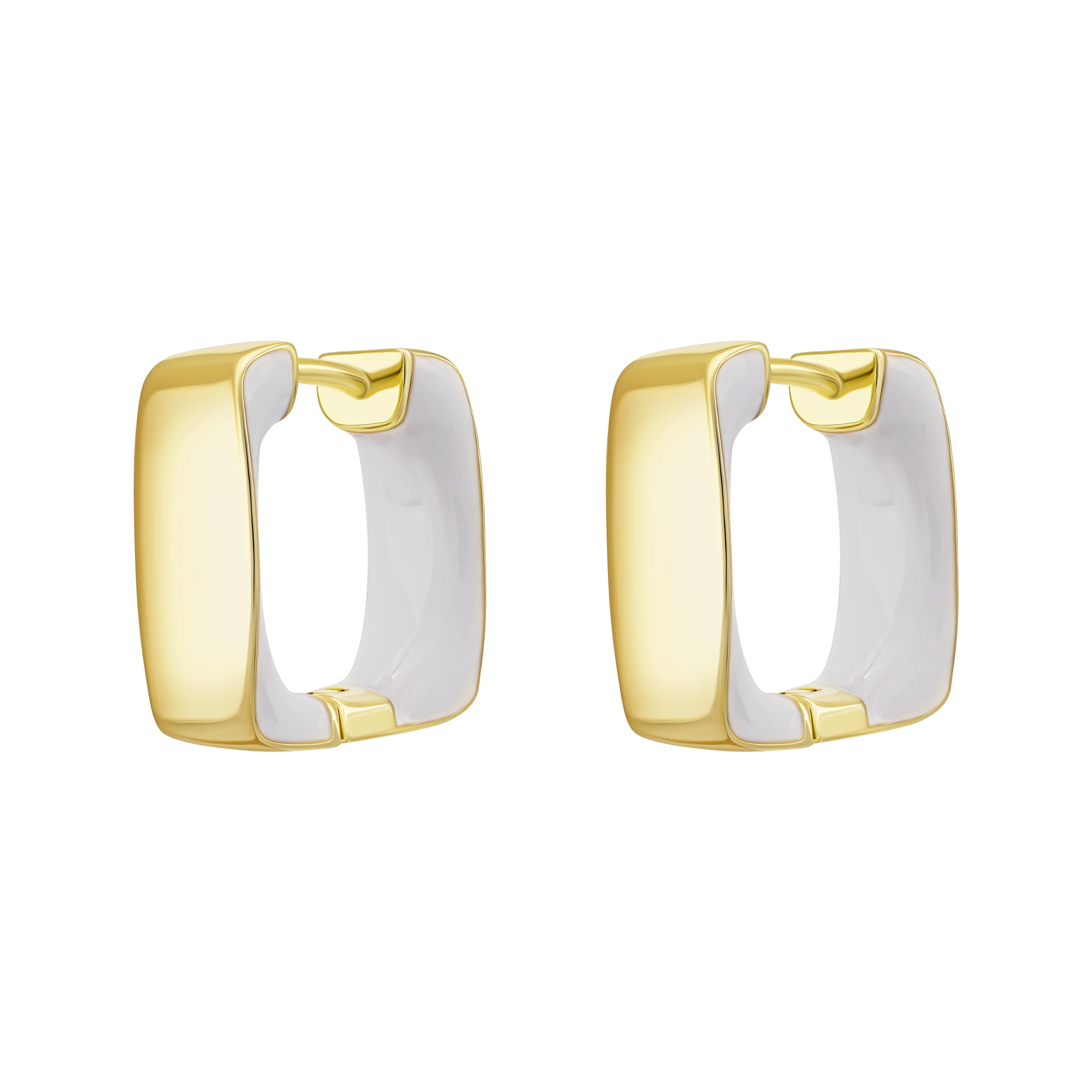 Срібні сережки квадратної форми з емаллю у жовтому родіюванні - 2055195