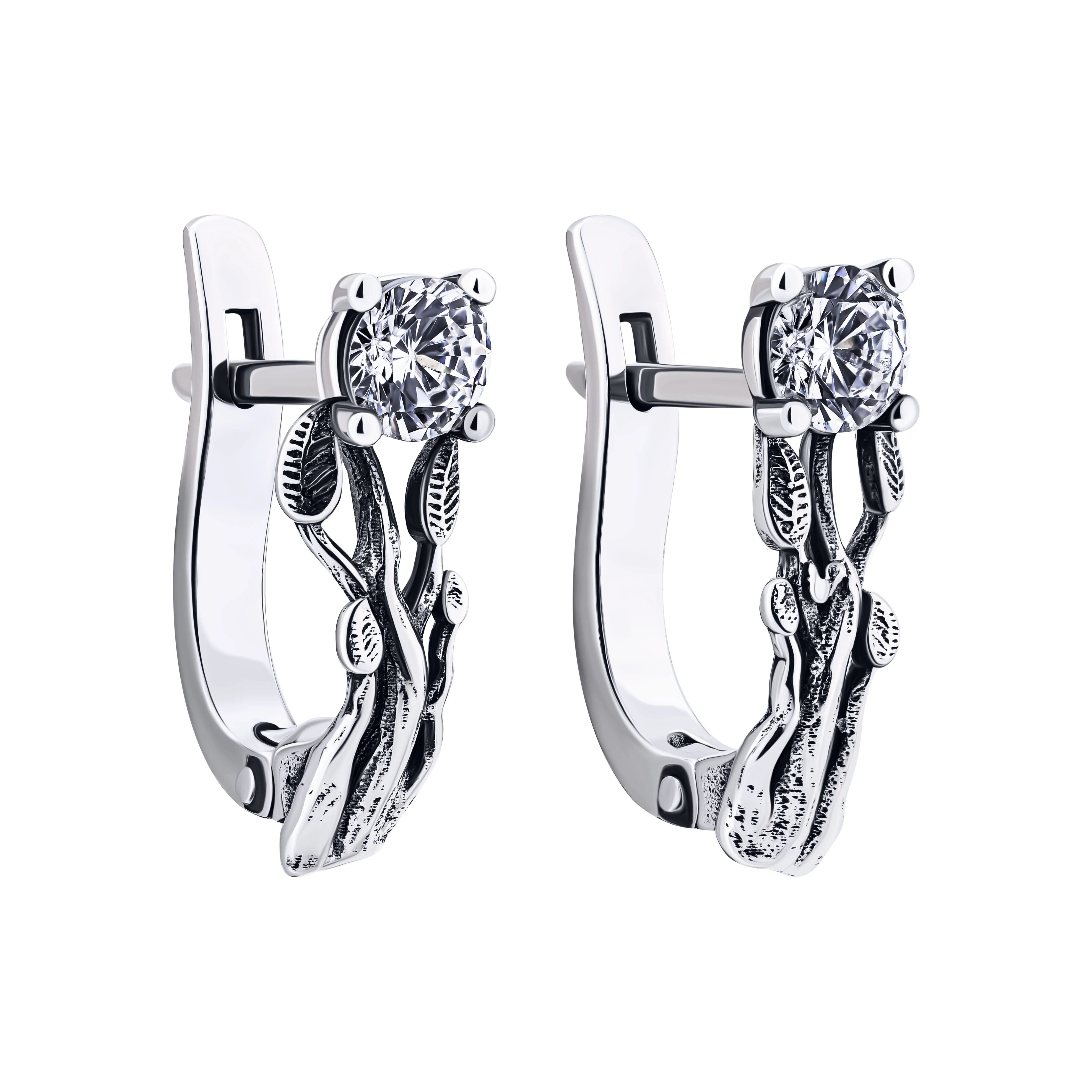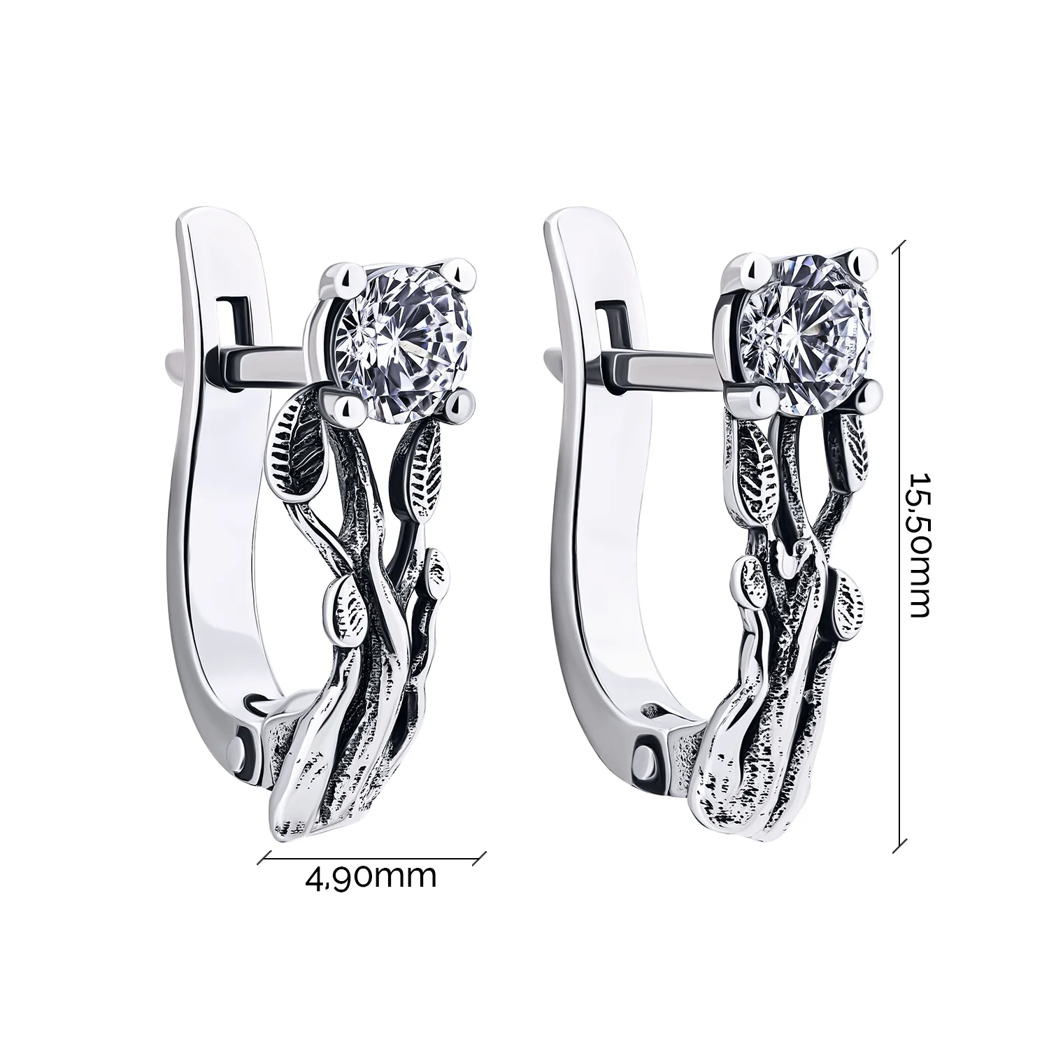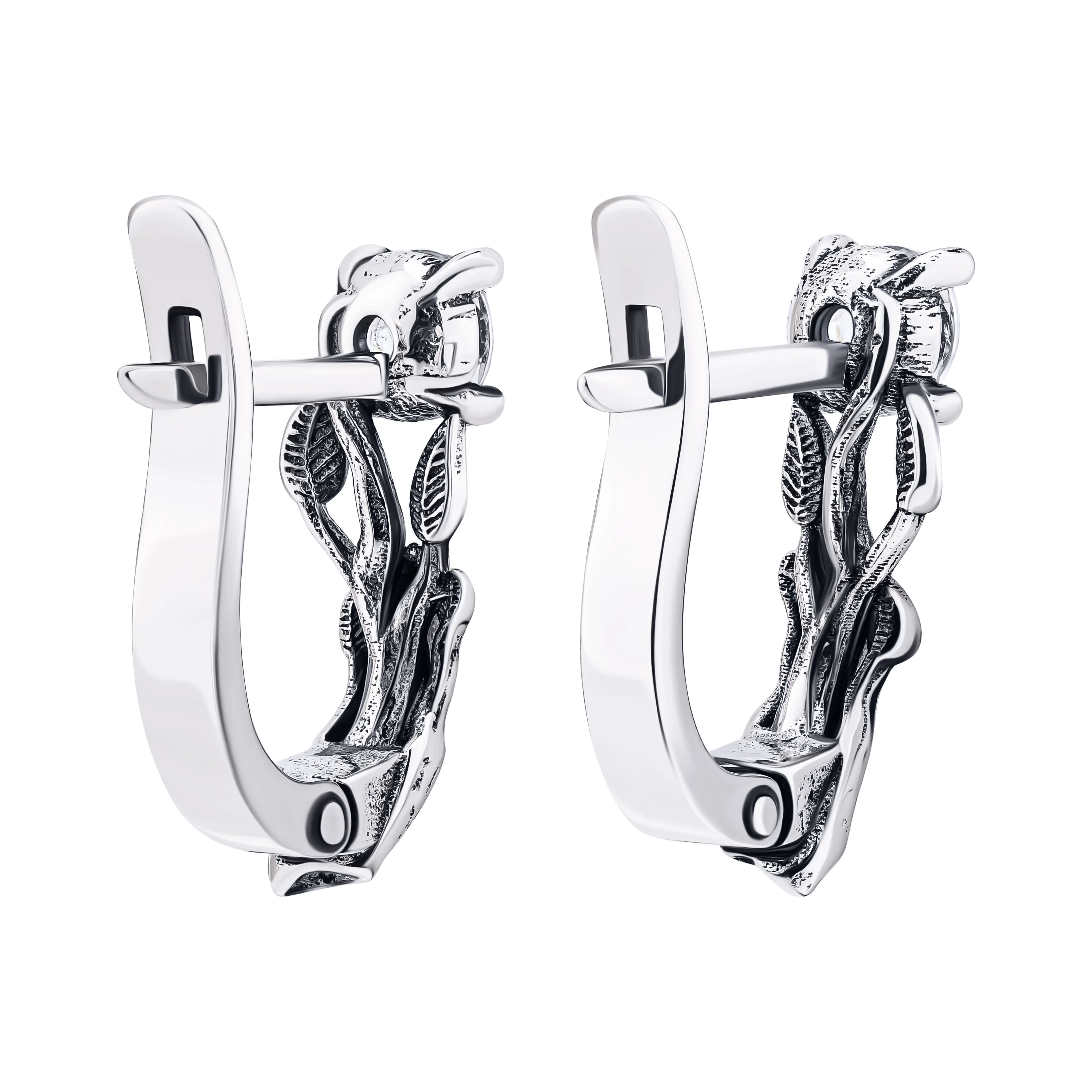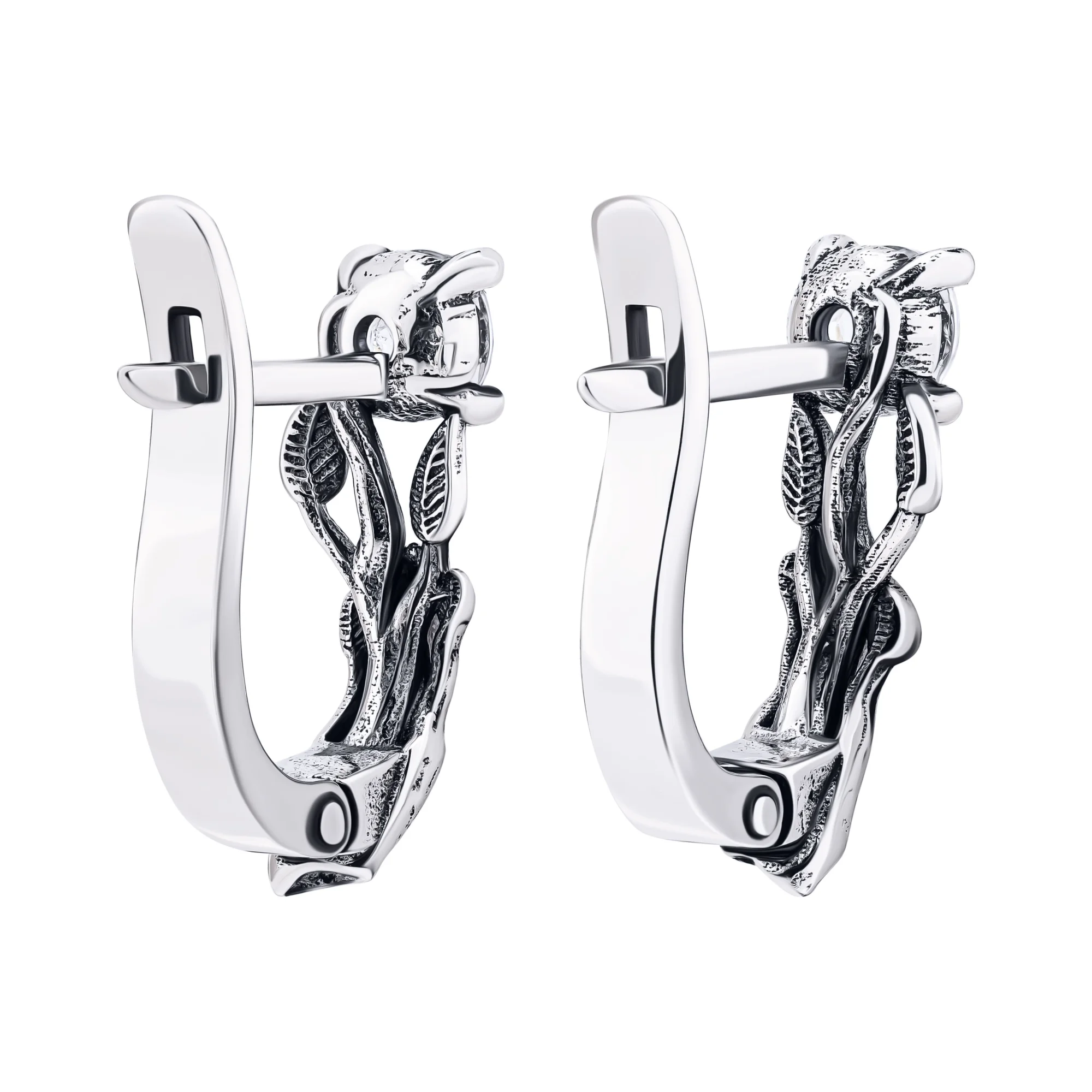 Срібні сережки "Листочки" з чорнінням та фіанітами - 2112461