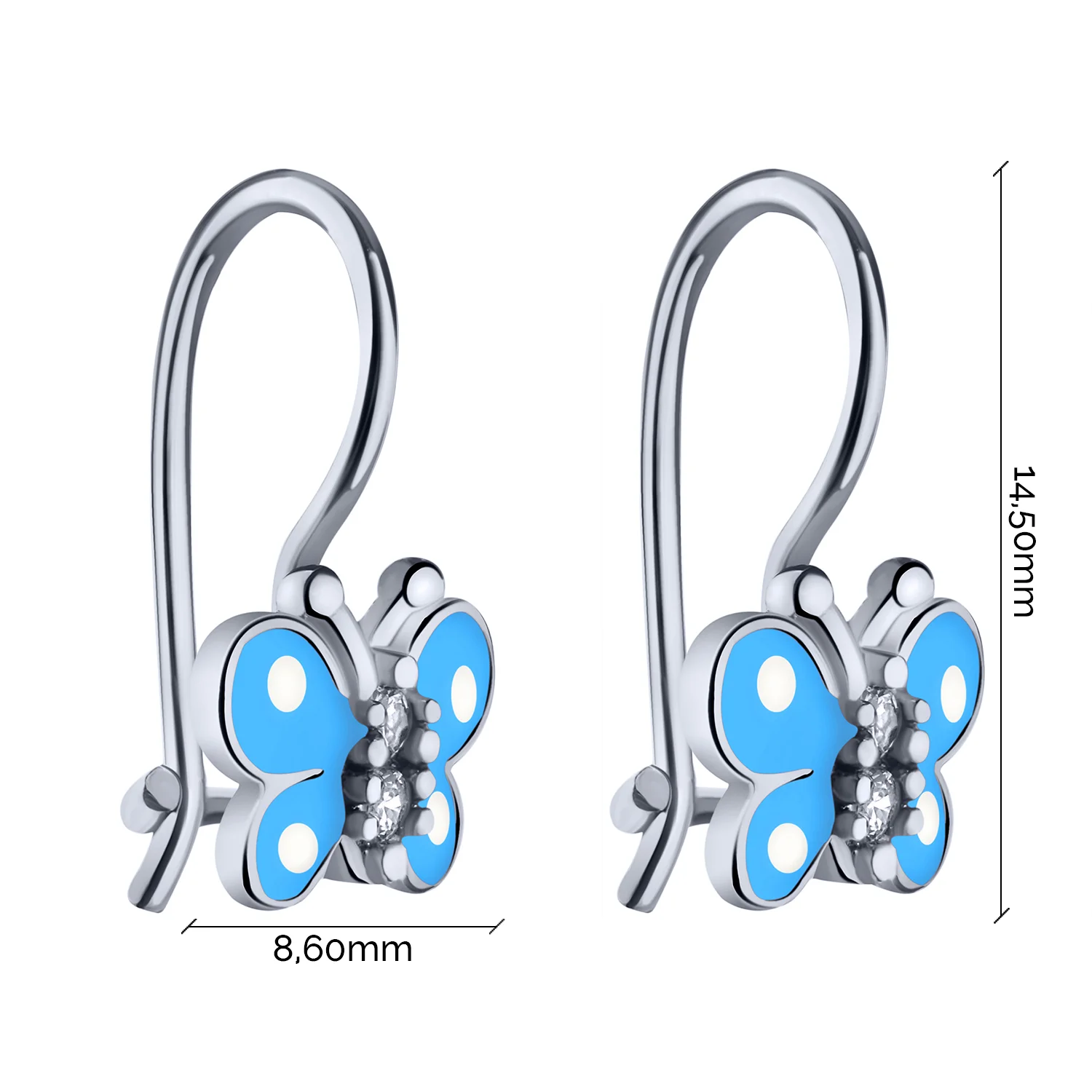 Срібні сережки-петлі "Метелик" з фіанітами та эмаллю для дітей - 2006203