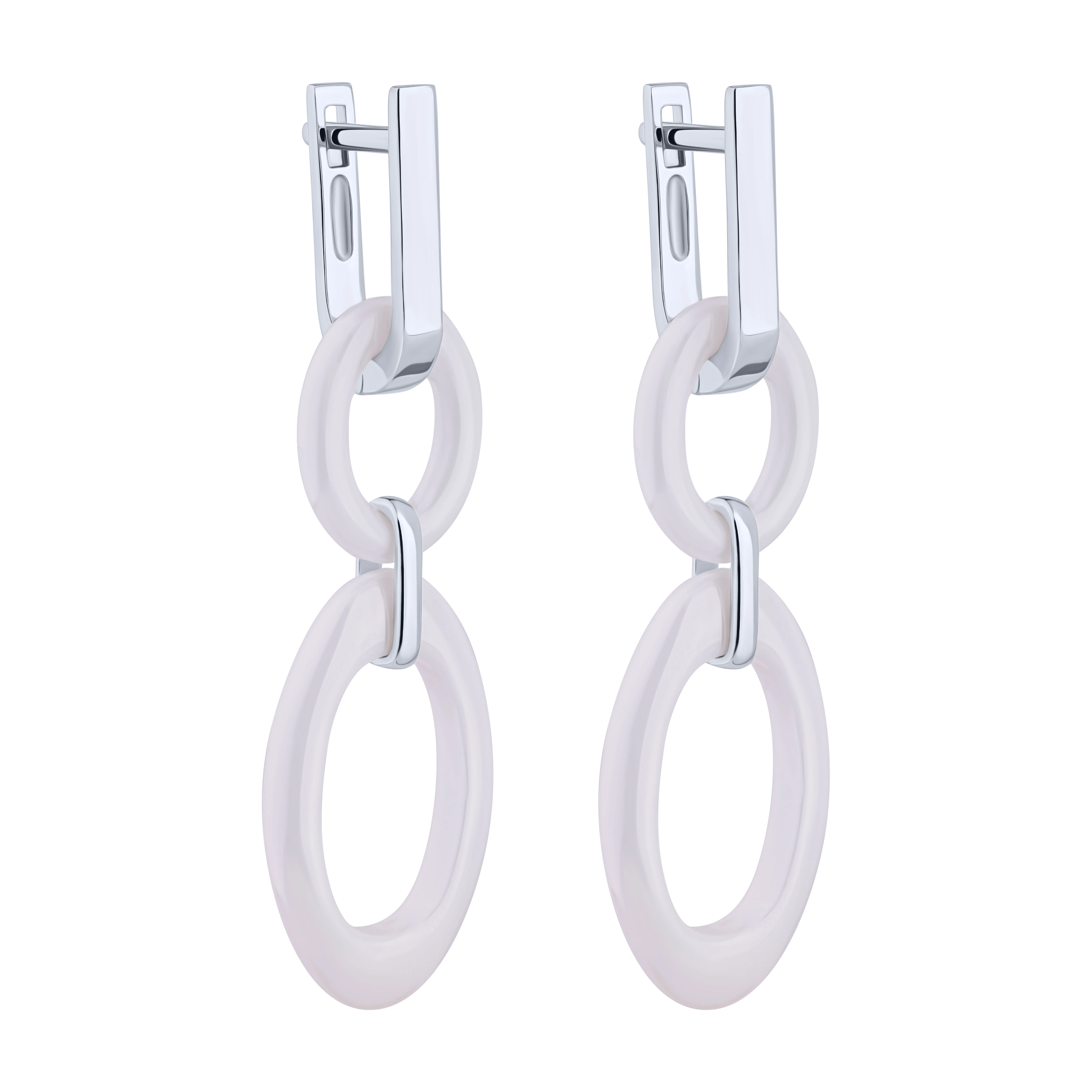 Срібні сережки "Овал" з керамічними підвісами - 2149453