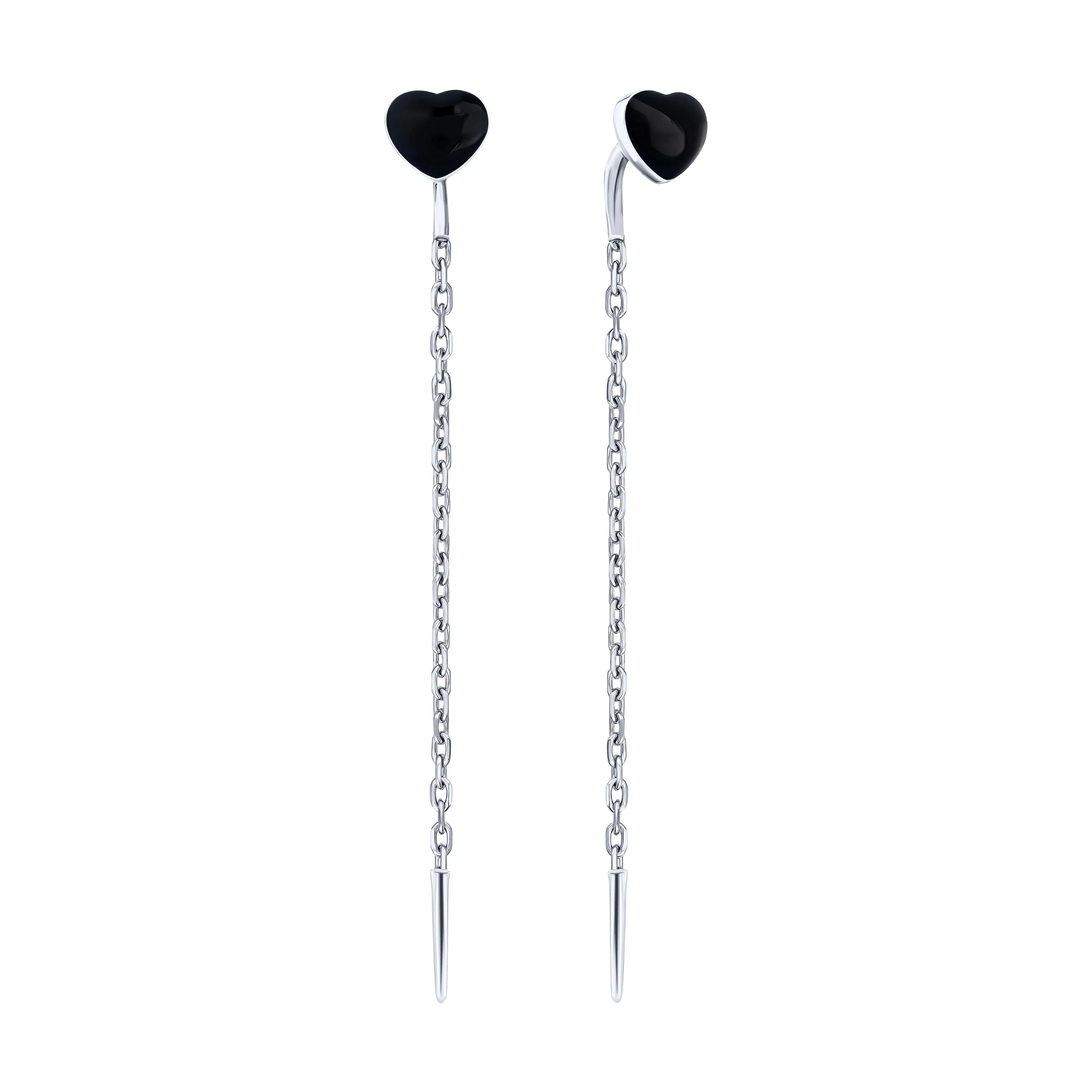 Срібні сережки-протяжки з емаллю "Серце" - 2167517